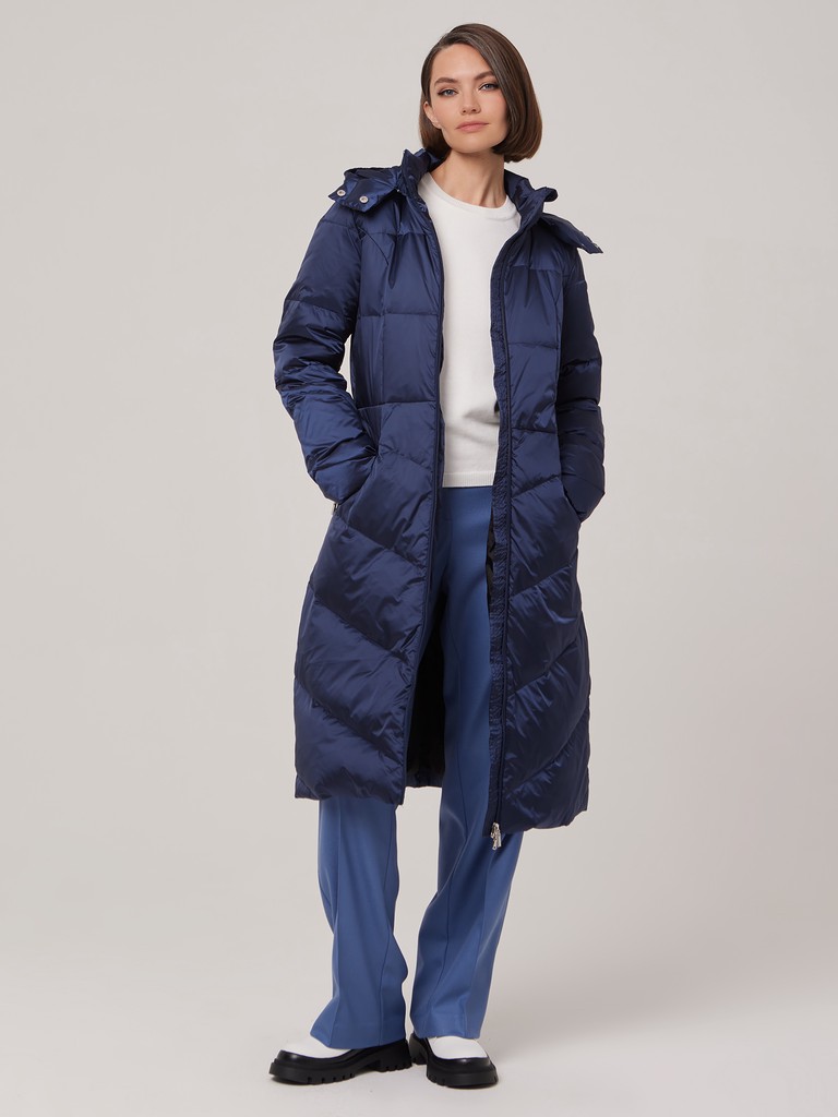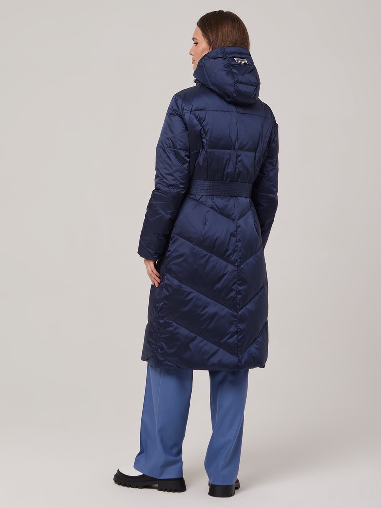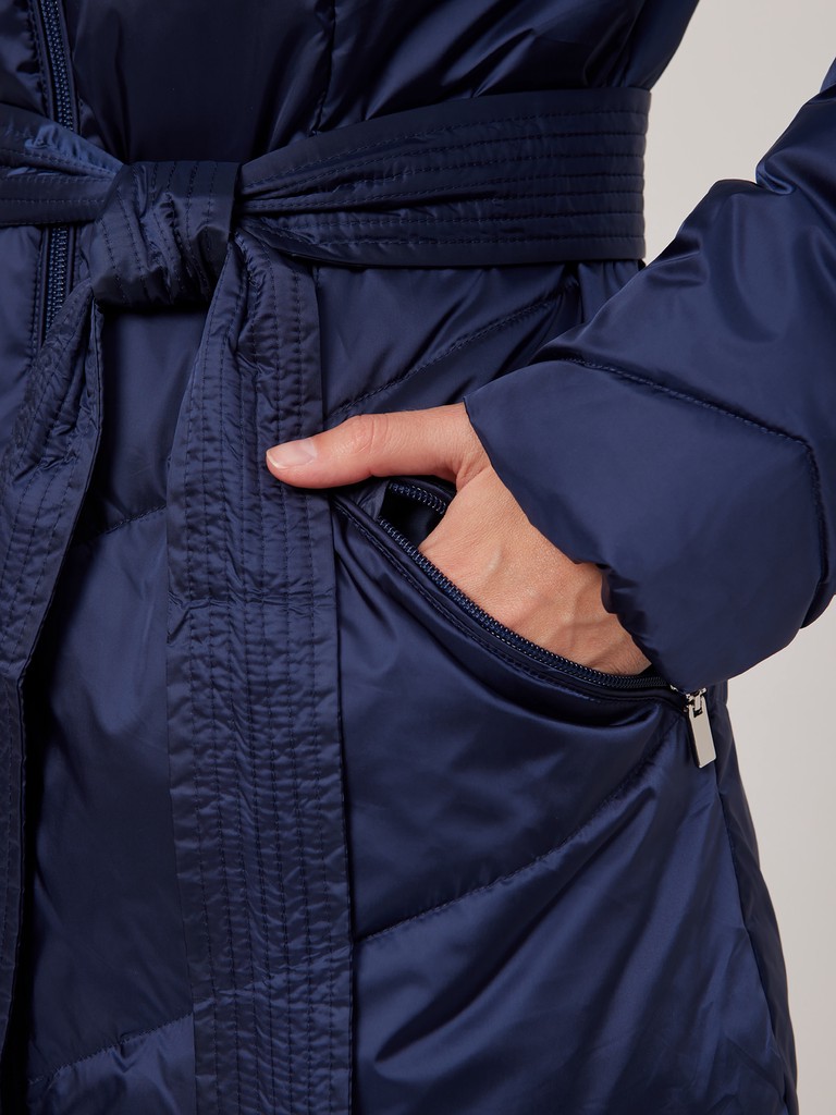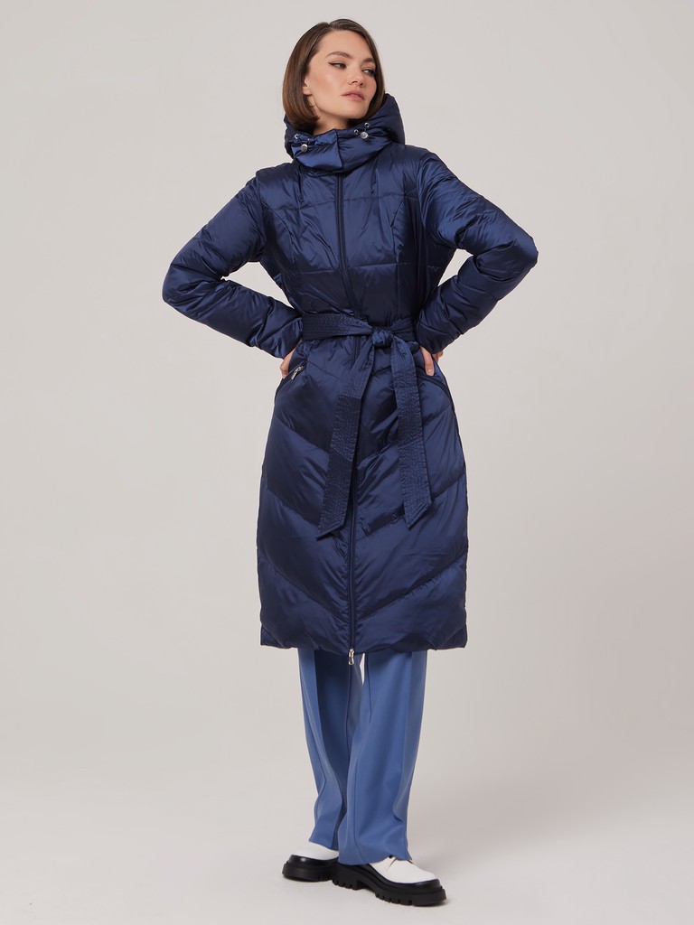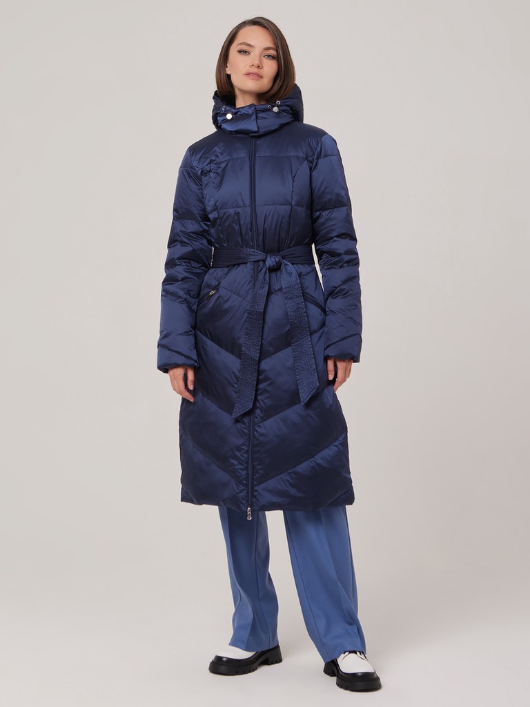 Женское пальто полуприлегающего силуэта с отстёгивающимся капюшоном и декоративной стёжкой. Обладает функциональными карманами с застёжкой на тесьму-молнию, втачными рукавами с ниткой-резинкой для большего прилегания. У пальто удобный съемный капюшон, который застегивается на внутренние магниты. Пояс выполнен с вертикальной отстрочкой, которая гармонично смотрится на изделии.