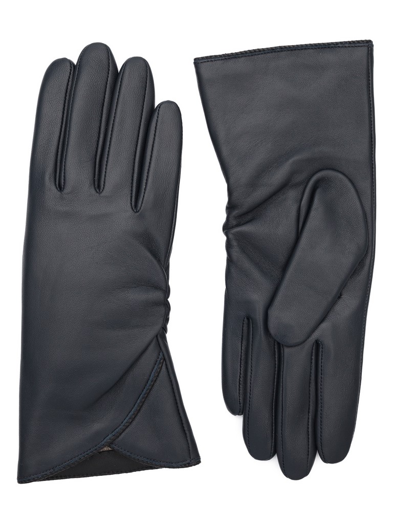 Перчатки женские торговой марки LABBRA производства Китай. Выполнены из натуральной кожи ягненка. Подкладка - 70% шерсть, 30% акрил. Отделка - декоративный V-образный декор с контрастным кантом на лицевой стороне и женственная драпировка по линии внешнего шва. Длина манжеты от нижней точки большого пальца до края перчаток - 7,5 см. Длина пальцев - средняя.