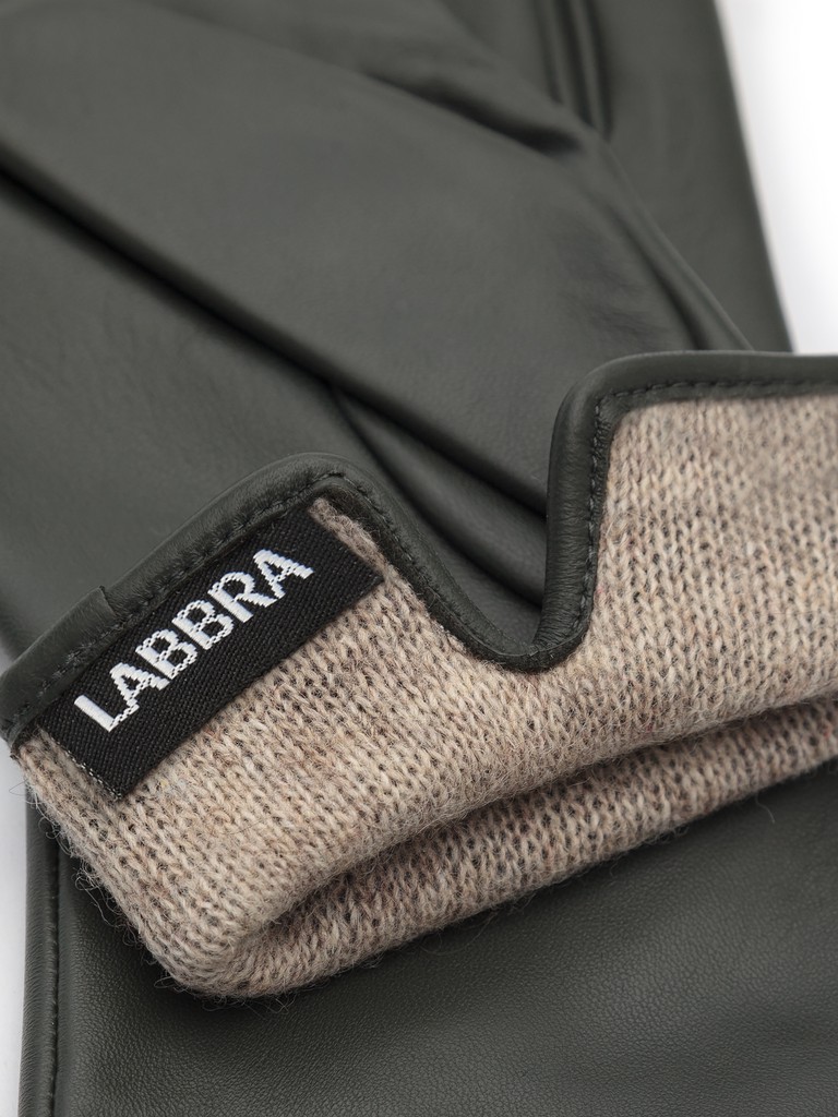 Перчатки торговой марки LABBRA из натуральной кожи ягненка. Производитель Китай. Подкладка: 70% шерсть, 30% акрил. Отделка - машинная строчка "три луча", фирменная фурнитура в виде собачки. Длина манжеты от нижней точки большого пальца до края перчаток - 6 см. Длина пальцев - средняя.
