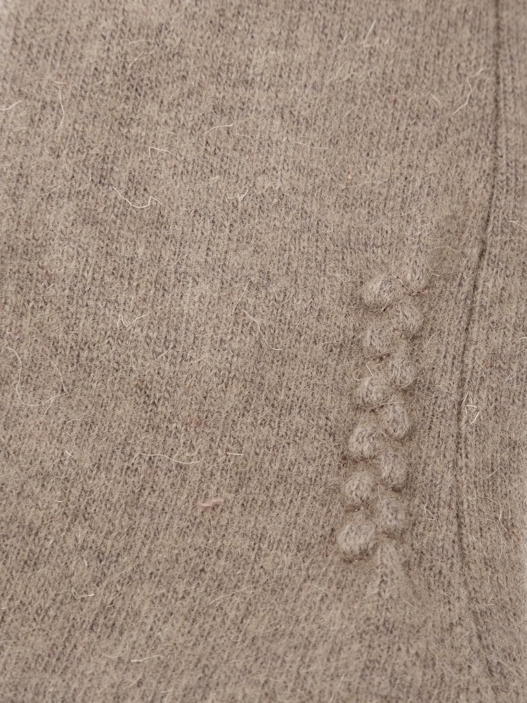 Перчатки торговой марки LABBRA производства Китай выполнены из трикотажной шерсти. Состав трикотажа: 80% шерсть, 20% нейлон. Без подкладки. Отделка - декоративные вертикальные отстрочки на боковой части манжеты. Длина манжеты от нижней точки большого пальца до края перчатки 5,5 см. Длина пальцев - средняя.