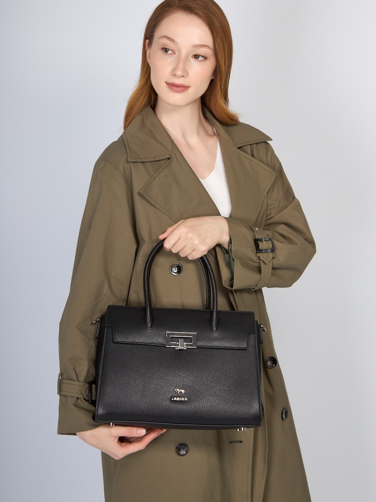 Женская сумка торговой марки Labbra из натуральной кожи. Модель застегивается на молнию. По бокам имеются два отделения на магнитных кнопках, в одном из которых есть открытый карман. Содержит внутри один отдел, в котором имеются карман на молнии и два открытых кармана. Высота ручки - 13 см. Максимальная длина регулируемого съемного плечевого ремня из натуральной кожи - 104 см, ширина - 1,5 см. Модель имеет ножки на дне. Не вмещает формат А4.