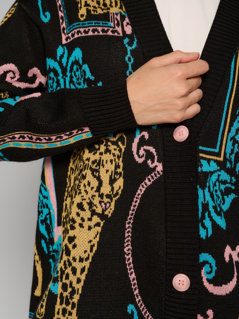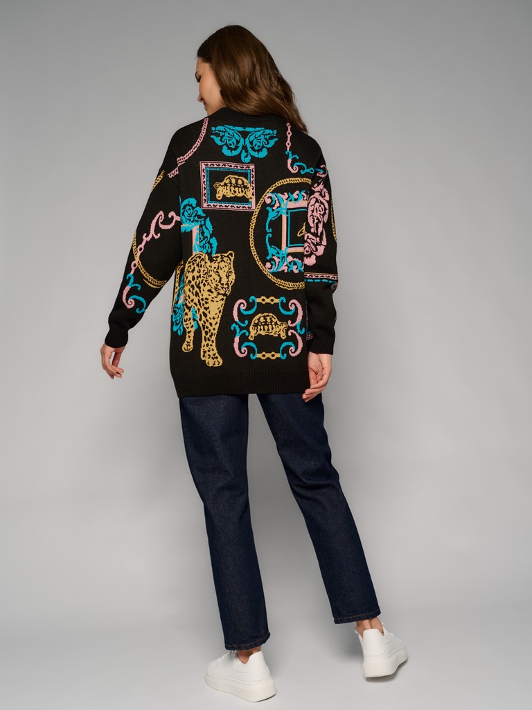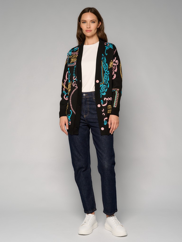 Женский удлиненный кардиган oversize из лимитированной коллекции ARABESQUE GLOW с оригинальным принтом от ELEGANZZA. Сочетание хлопка и акрила позволяет джемперу хорошо сохранять форму и цвет после долгой носки. Комфортная посадка и актуальный дизайн позволяют создавать стильные образы на каждый день.