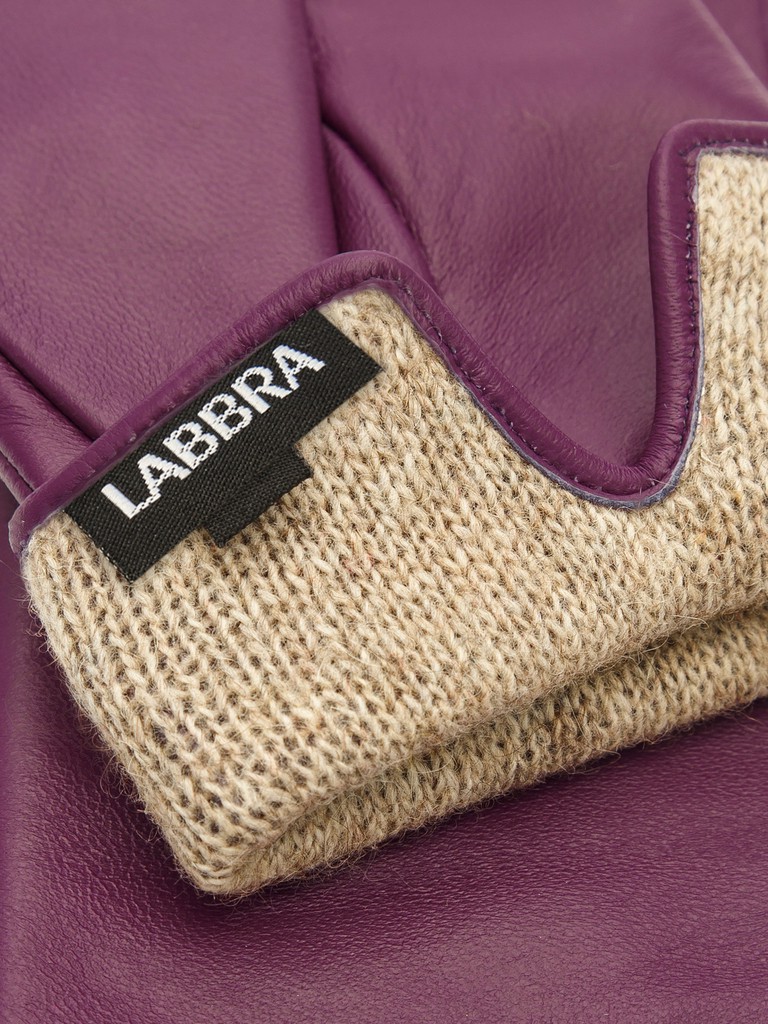Перчатки торговой марки LABBRA из натуральной кожи ягненка. Производитель Китай. Подкладка: 70% шерсть, 30% акрил. Отделка - машинная строчка "три луча", фирменная фурнитура в виде собачки. Длина манжеты от нижней точки большого пальца до края перчаток - 6 см. Длина пальцев - средняя.