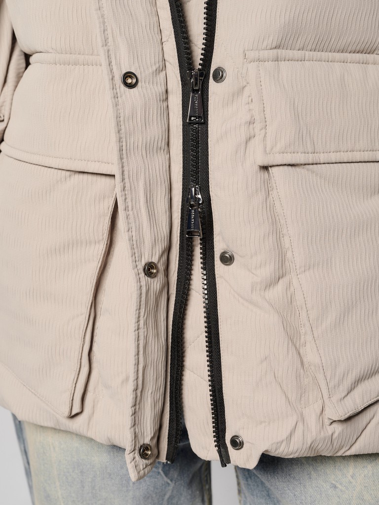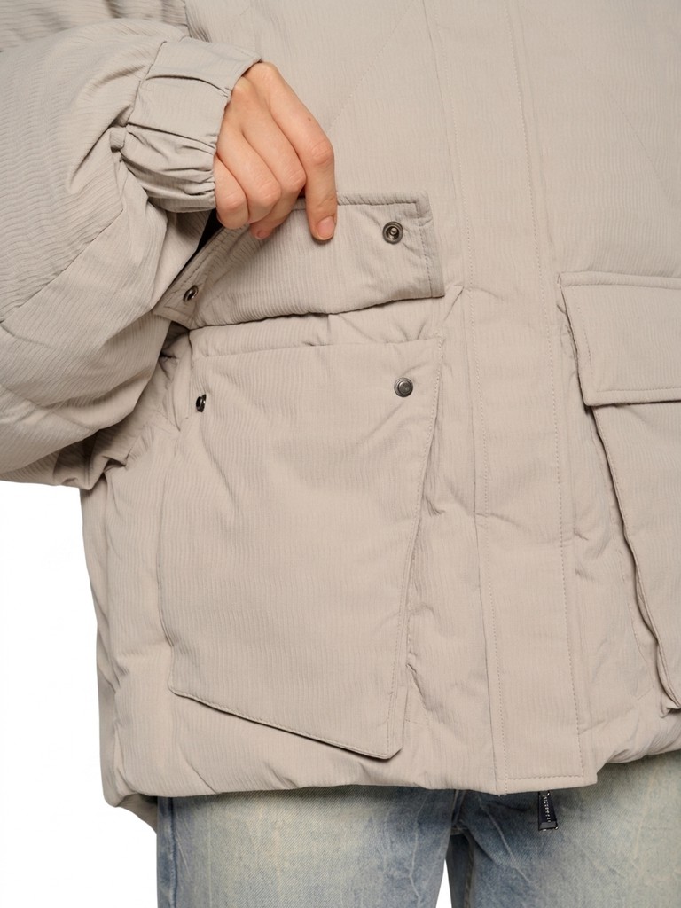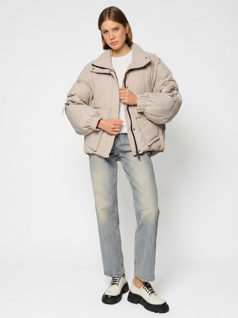 Куртка женская силуэта летучая мышь. Универсальный технологичный материал верха, позволяет легко ухаживать за изделием даже при сильном загрязнении. Стильная куртка идеально подойдет на осенне-зимний сезон с температурным режимом от 0 до -15 градусов. Крупная молния, упростит процесс эксплуатации, а ветрозащитная планка и высокий воротник стойка уберегут от сильных ветров. Крупные накладные карманы поддерживают образ куртки и ее крупную стежку, создавая законченный вид универсальному образу, который возможно совместить, как со спортивным стилем, так и со стилем casual
