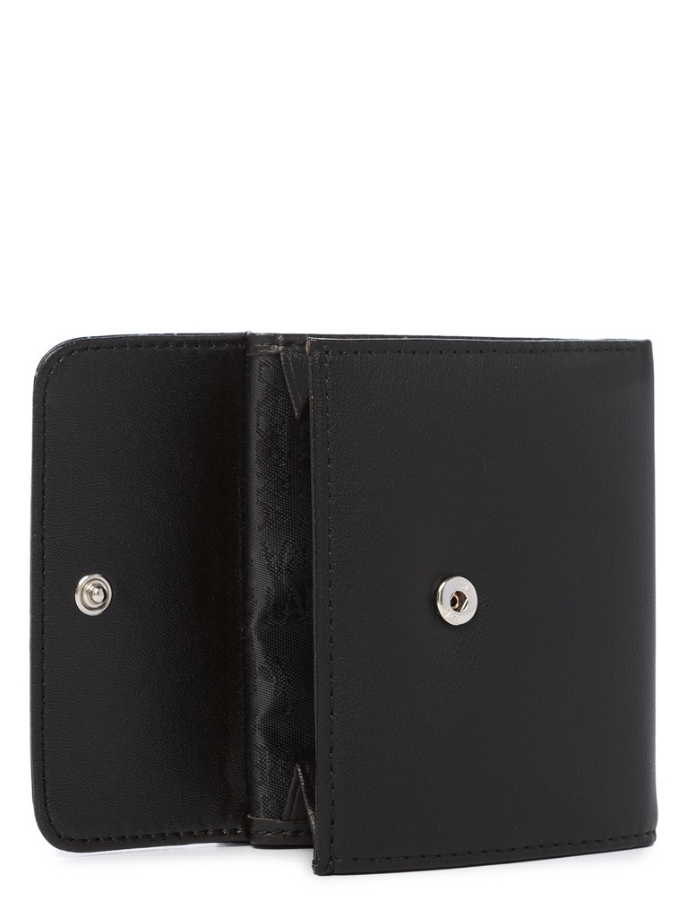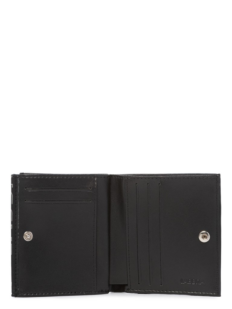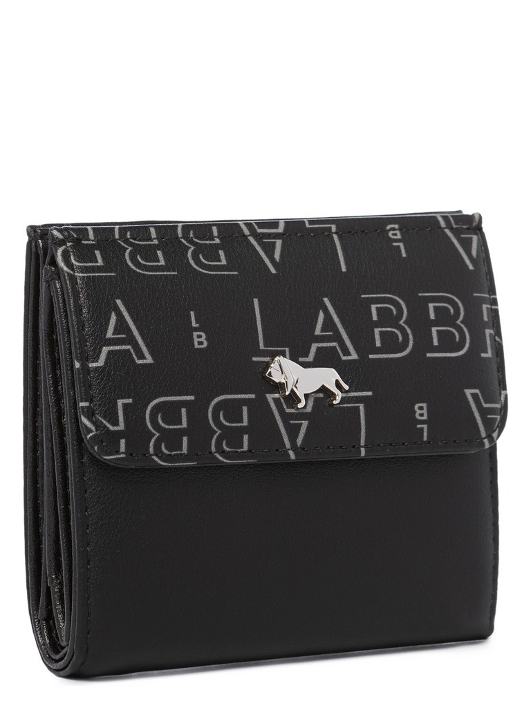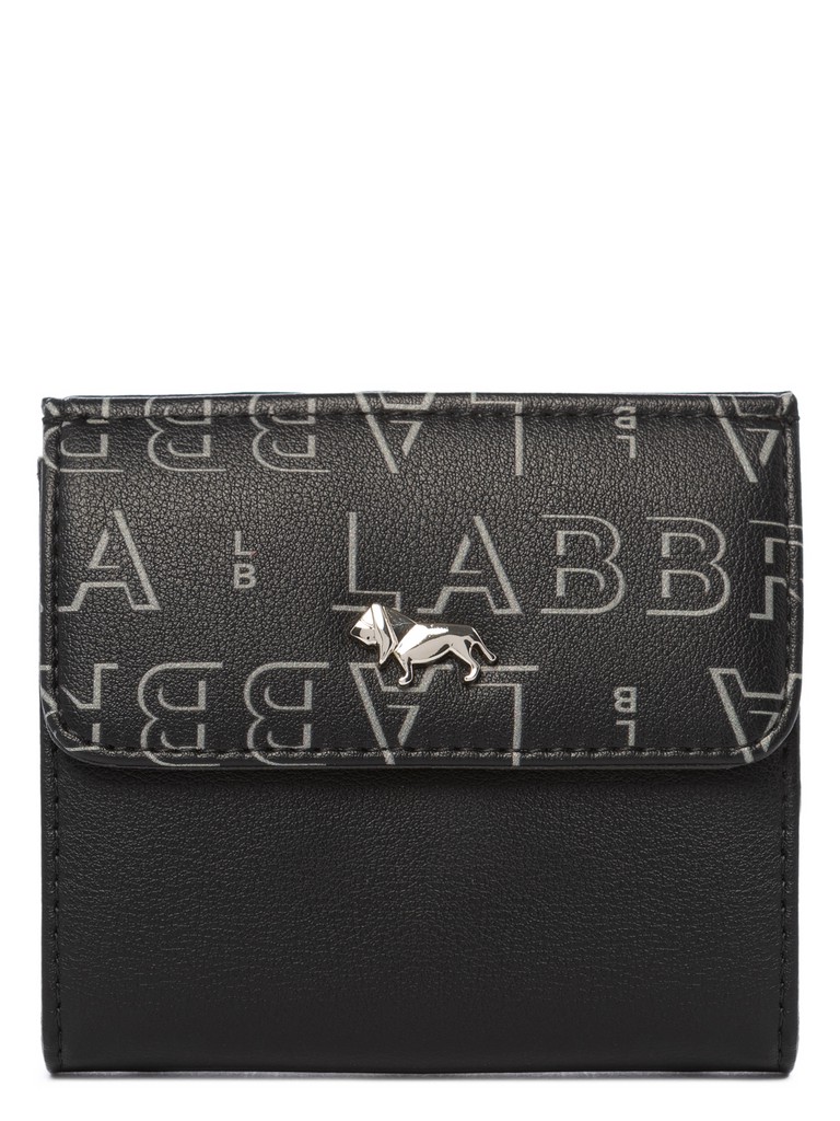 Женский кошелёк торговой марки LABBRA из натуральной кожи. Основное отделение закрывается на кнопку. Внутри: два складывающихся отделения для купюр, одно из которых закрывается на дополнительную пластиковую молнию; пять карманов для карточек и два дополнительных плоских кармана. Снаружи кошелька имеется отделение для мелочи, которое закрывается клапаном с кнопкой.