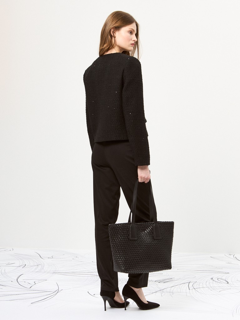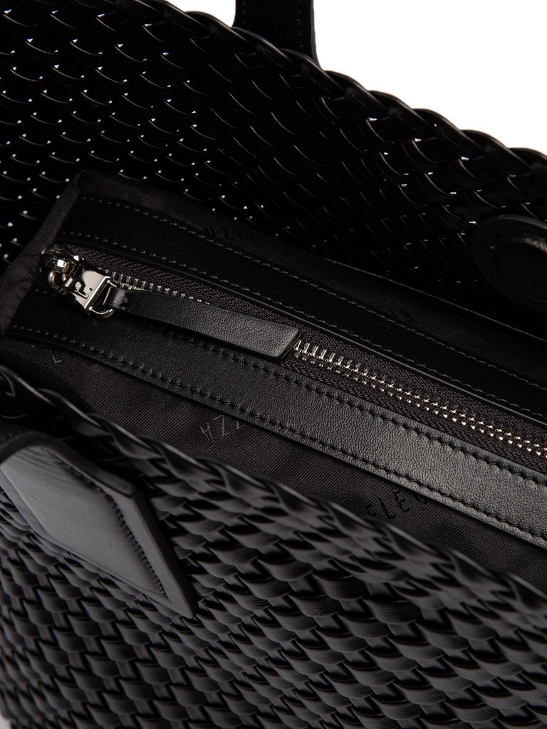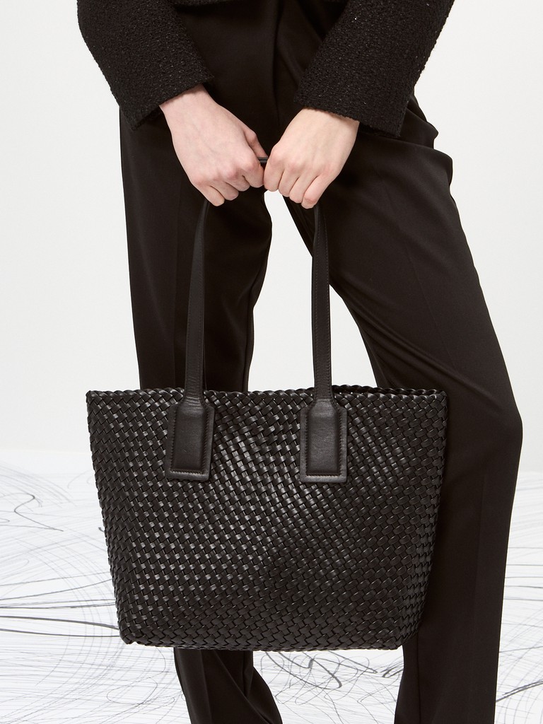 Женская сумка торговой марки Eleganzza выполнена из высококачественной телячьей кожи. Корпус сумки изготовлен с использованием техники ручного плетения, что придает изделию особую прочность. Модель застегивается на скрытый магнит. Содержит внутри одно отделение с вкладной косметичкой. Косметичка застегивается на молнию и имеет внутри карман на молнии. На задней стенке косметички есть открытый карман. Высота ручек - 26 см. Модель не имеет ножки на дне. Вмещает формат А4.