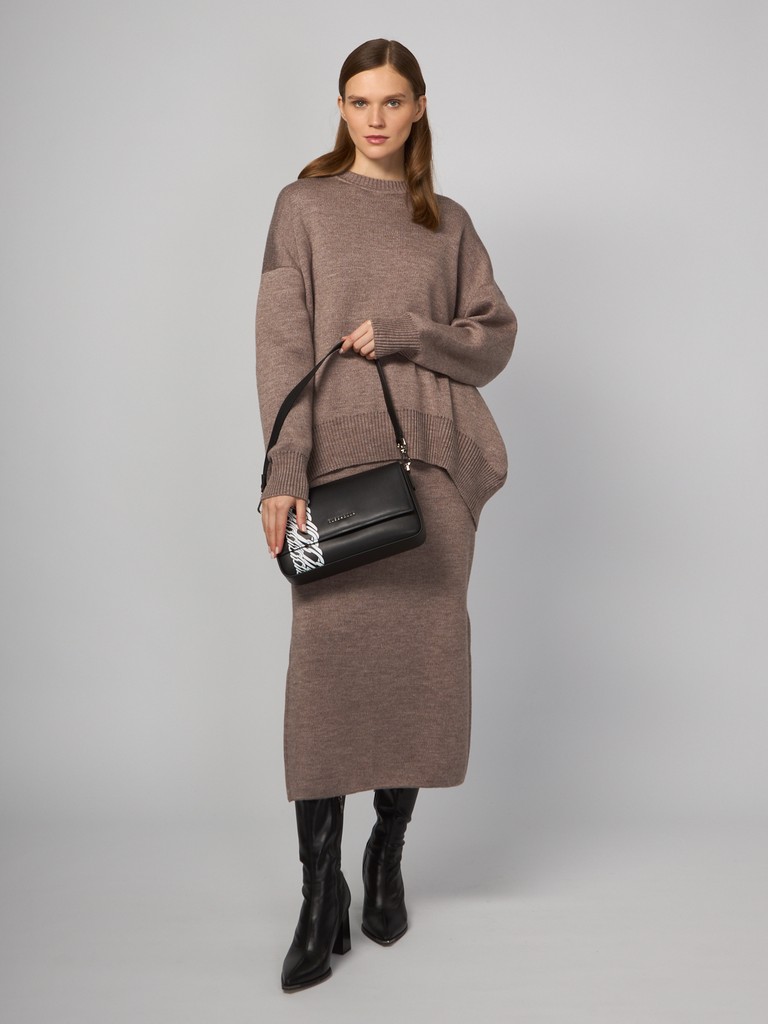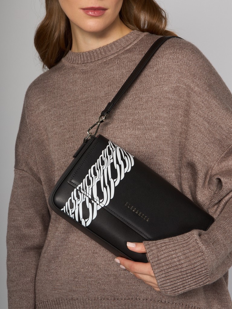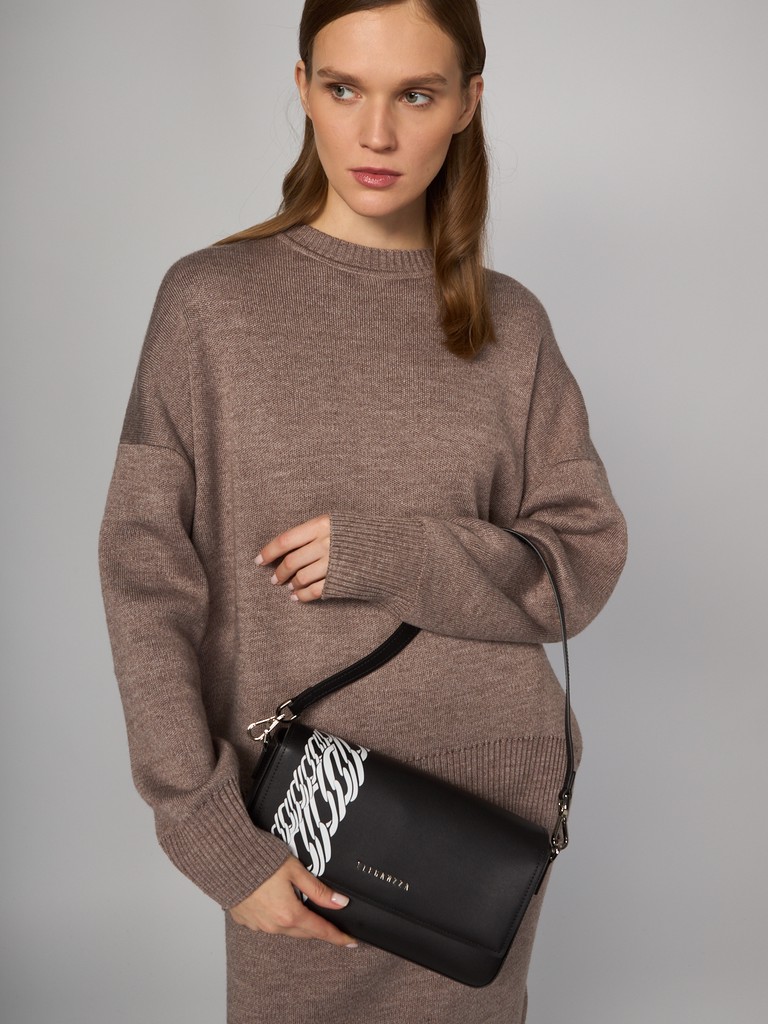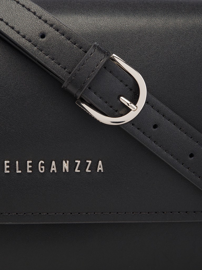 Женская сумка торговой марки Eleganzza из натуральной кожи. Модель закрывается на клапан с поворотным дизайнерским замком. Внутри одно отделение с карманом на молнии и открытым карманом. На задней стенке - карман на молнии. Высота съёмной ручки – 30 см. Длина наплечного ремня из натуральной кожи - 115 см., ширина – 2,5 см. Модель не имеет ножки на дне.