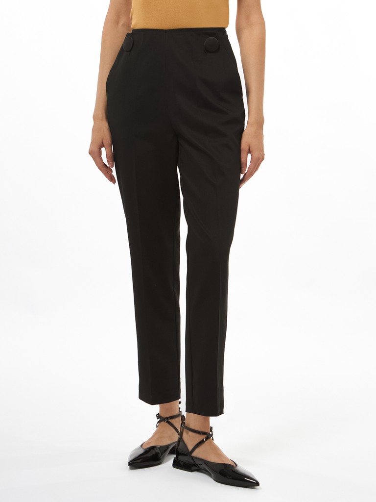 Эти женские брюки зауженного силуэта – элегантная основа для создания разнообразных образов. Лаконичный дизайн с косыми карманами делает их универсальными и подходящими для любого времени года. Для этой модели мы выбрали прочную и приятную к телу ткань, которая хорошо сохраняет форму. Носите их с блузой и каблуками для создания изысканного делового образа или с футболкой и кроссовками для более непринужденного стиля.