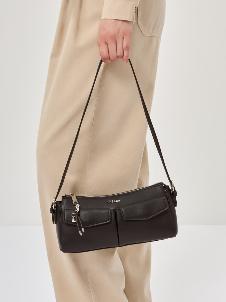 Женская сумка торговой марки Labbra из натуральной кожи. Новая айдентика любимого бренда представлена в оригинальной подвеске из кожи с авторской фурнитурой. Объемные накладные карманы в стиле cargo, которые стали популярны не только в одежде, но и в сумках, добавляют изделию функциональности. Они идеально вписываются в повседневный городской стиль sport-chic, сочетая в себе практичность и современный дизайн. Модель застегивается на молнию. Внутри одно отделение с карманом на молнии и двумя открытыми карманами. Дополнительные карманы на передней и задней стенках сумки. Высота ручки - 26 см. Максимальная длина регулируемого съемного плечевого ремня из натуральной кожи - 132 см, ширина - 1,5 см. Модель не имеет ножки на дне. Не вмещает формат А4.