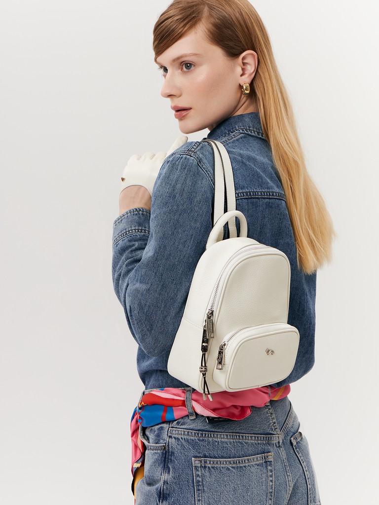 Женский рюкзак торговой марки Labbra из натуральной кожи. Новая айдентика любимого бренда представлена в оригинальной подвеске из кожи с авторской фурнитурой. Модель застегивается на двухзамковую молнию. Содержит внутри один отдел, в котором имеются карман на молнии и открытый карман. На передней стенке есть карман на молнии. Высота ручки - 4 см. Длина лямки - 66 см., ширина - 1,5 см. Модель не имеет ножки на дне. Не вмещает формат А4.