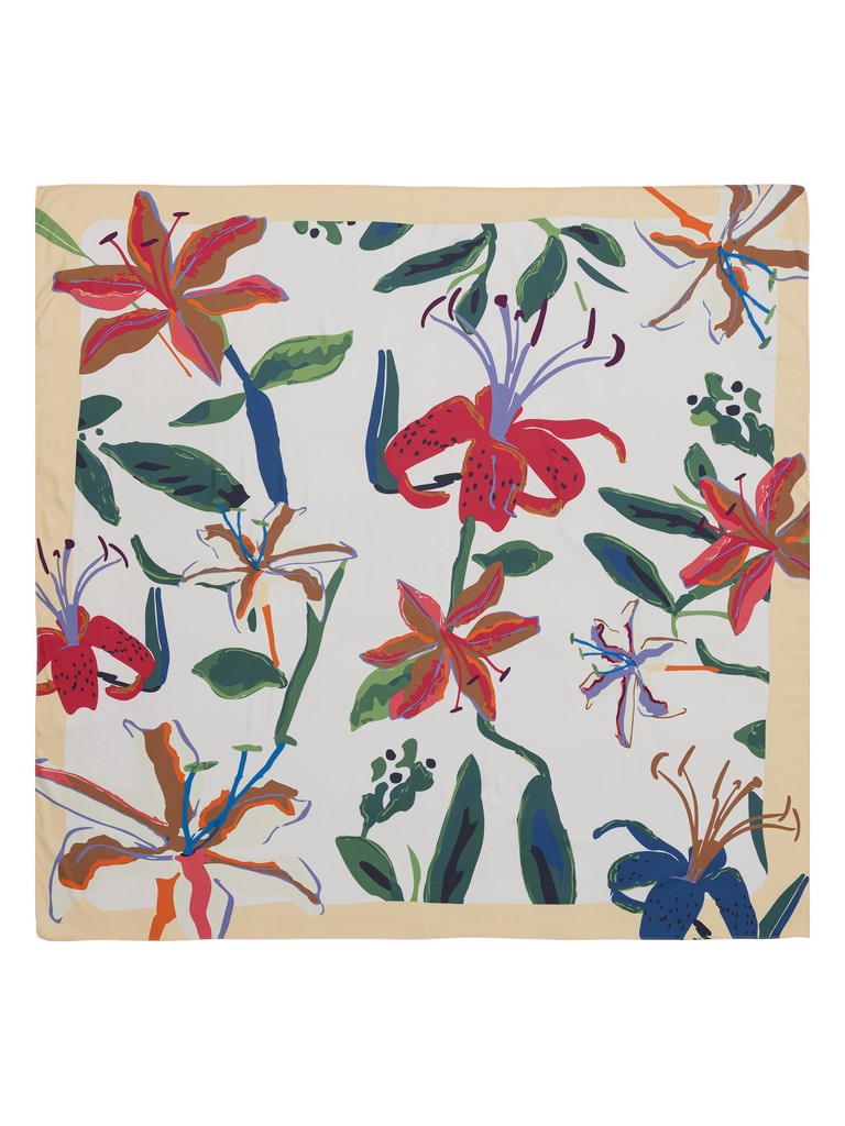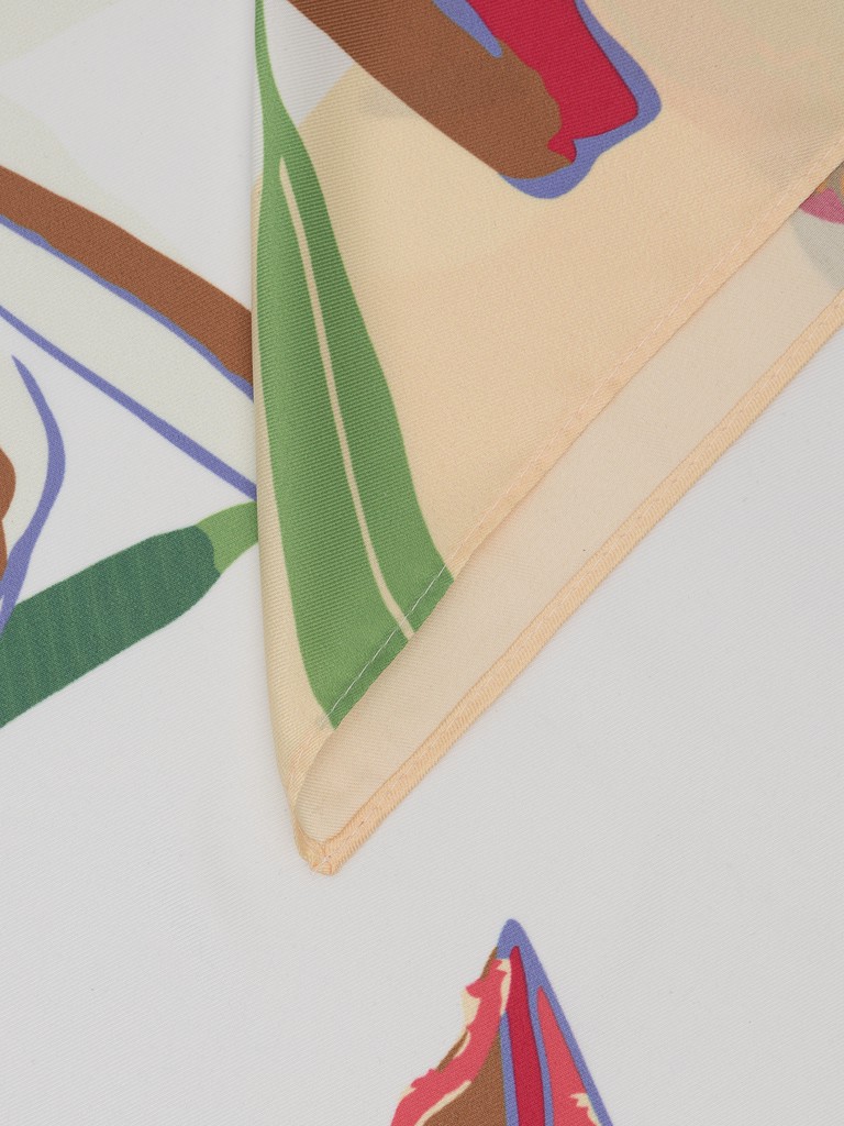 Платок женский торговой марки Labbra. Состав: 50% шелк, 50% вискоза. Тип подгибки: машинная подгибка. Размер: 100х100см.
