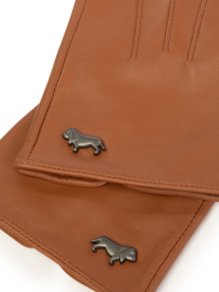 Перчатки торговой марки LABBRA из натуральной кожи ягненка. Производитель Китай. Подкладка: шелк. Отделка - машинная строчка "три луча", фирменная фурнитура в виде собачки. Длина манжеты от нижней точки большого пальца до края перчаток - 6 см. Длина пальцев - средняя.