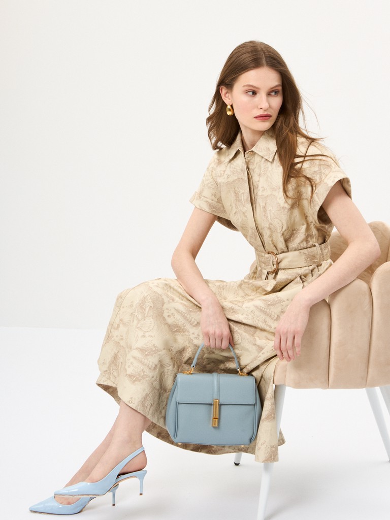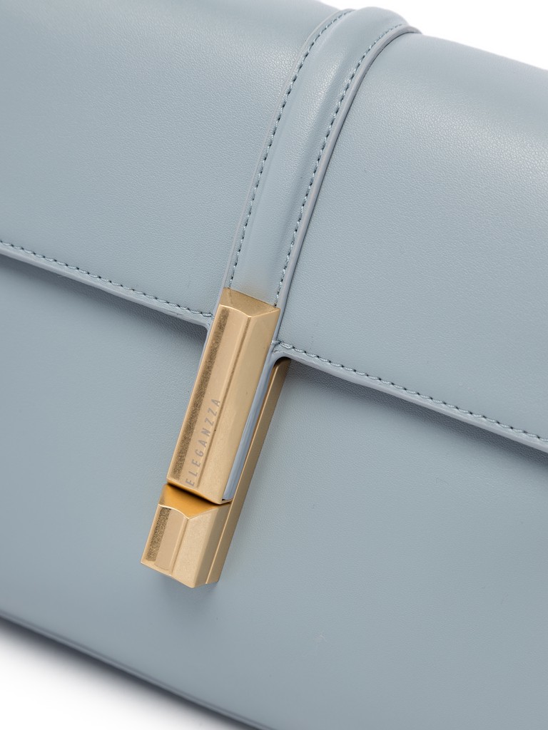 Женская сумка торговой марки Eleganzza из натуральной кожи. Модель закрывается клапаном на замок. Содержит внутри два отдела, между которыми имеется отделение на молнии, в одном отделе имеется карман на молнии. На передней стенке под клапаном есть открытый карман. На задней стенке есть карман на молнии. Высота ручки - 10 см. Максимальная длина регулируемого съемного плечевого ремня из натуральной кожи - 121 см, ширина - 1,5 см. Модель имеет ножки на дне. Не вмещает формат А4.