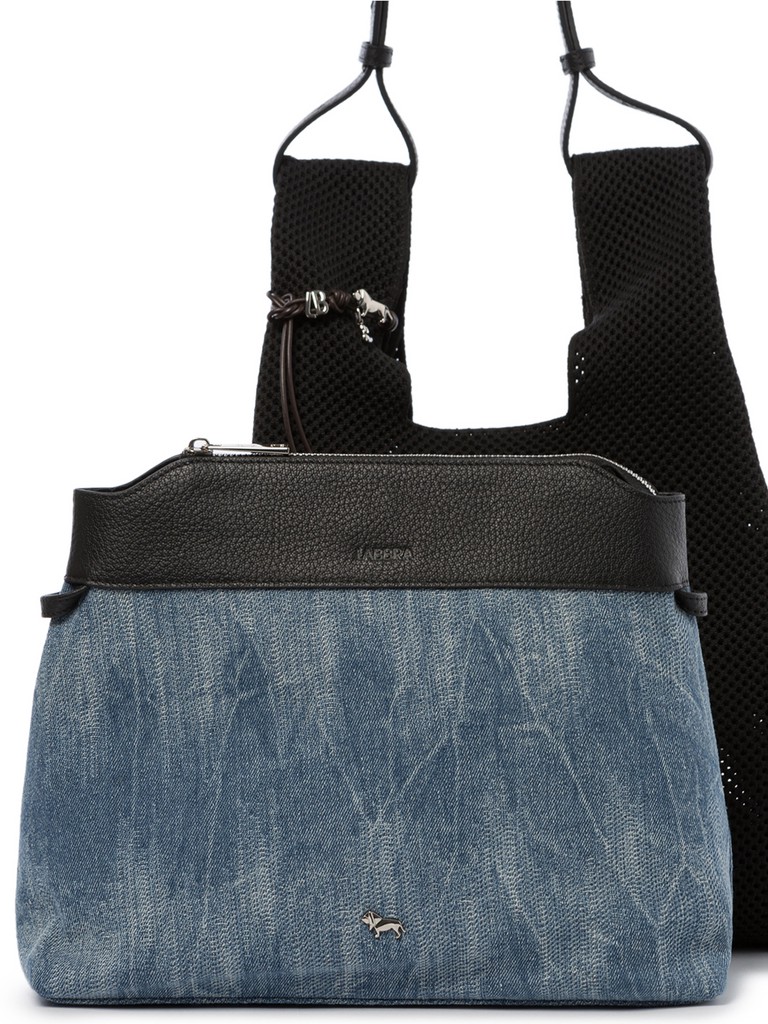 Женская сумка торговой марки Labbra из полиэстера. Новая айдентика любимого бренда представлена в оригинальной подвеске из кожи с авторской фурнитурой. Внутри одно отделение с вкладной косметичкой. Вкладная косметичка из денима может использоваться как отдельный стильный клатч или, благодаря съемному кожаному ремню, как удобный кросс-боди. Это универсальное решение для создания модных образов. Высота ручки - 40 см. Модель не имеет ножки на дне. Вмещает формат А4.