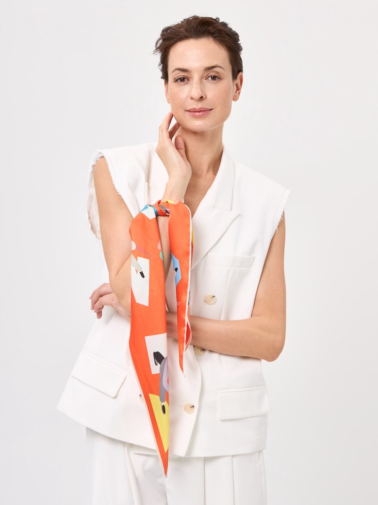 Платок ромбовидный женский торговой марки Labbra. Состав: 50% шелк, 50% вискоза. Тип подгибки: машинная подгибка. Размер: 45х120см.