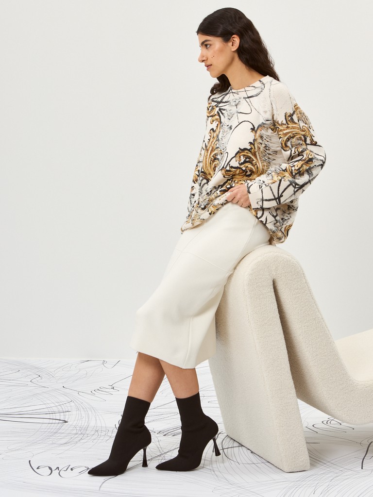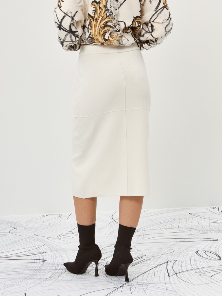 Вязаная юбка для уютных и стильных образов. Полуприлегающий силуэт и длина миди выгодно подчеркивают фигуру. Эластичный пояс обеспечивает комфортную посадку. Идеально сочетается с вязаным жилетом в тон, создавая завершенный и гармоничный образ.