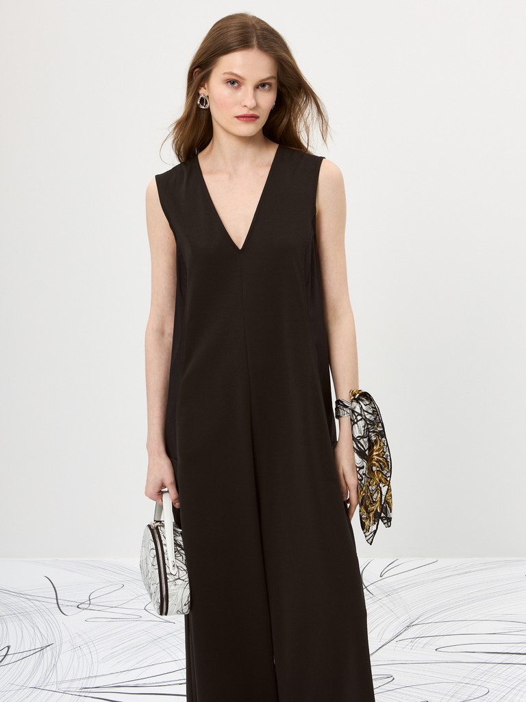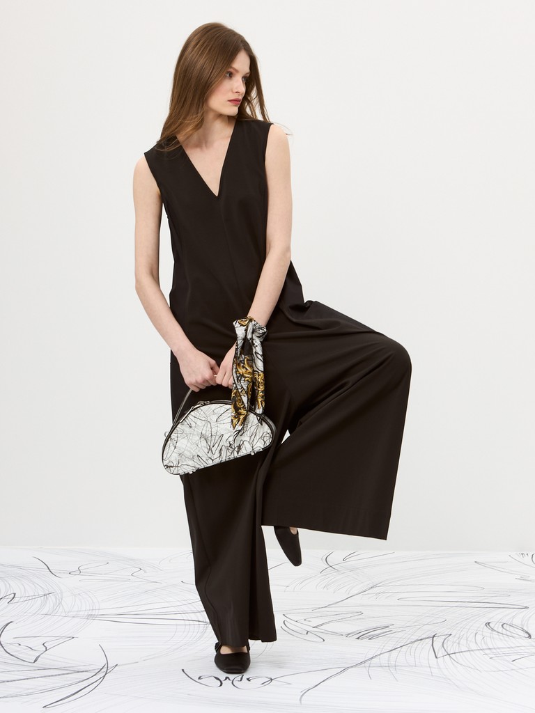 Комбинезон свободного кроя из комбинированных тканей – это комфорт, стиль и функциональность в одном! U-образная горловина, эффектная молния, большие карманы и широкая подгибка – каждая деталь продумана для вашего удобства и безупречного образа в динамичном городе.