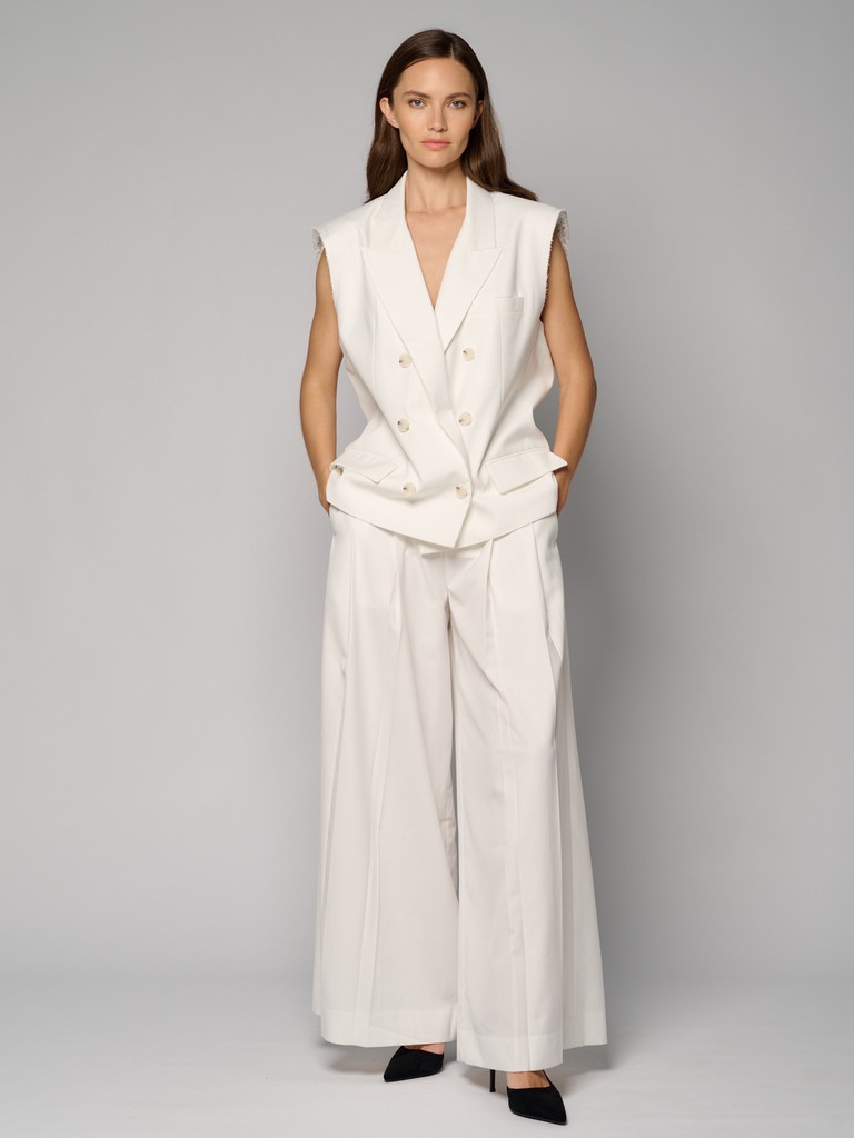 Эти легкие летние брюки из смесовой ткани обеспечат вам комфорт даже в самую жаркую погоду. Скрытая застежка-молния и элегантные складки спереди создают аккуратный силуэт, а два прорезных кармана сзади добавляют функциональности. Для этой модели мы выбрали дышащий материал, чтобы вам было максимально комфортно. Носите их с футболкой или топом из нашей коллекции.