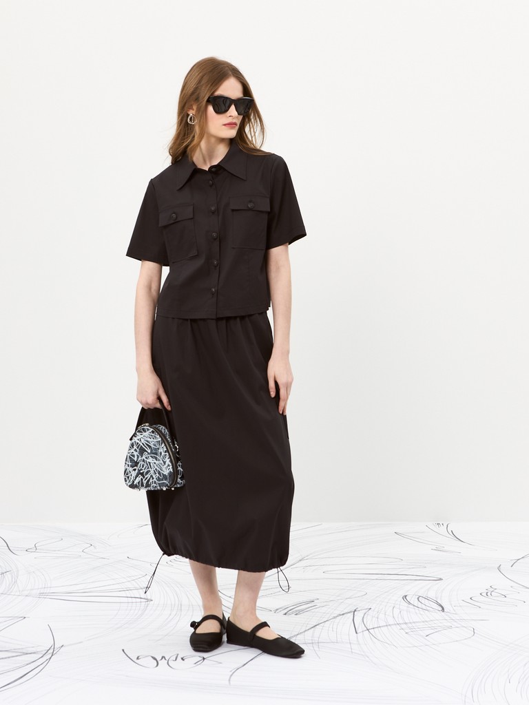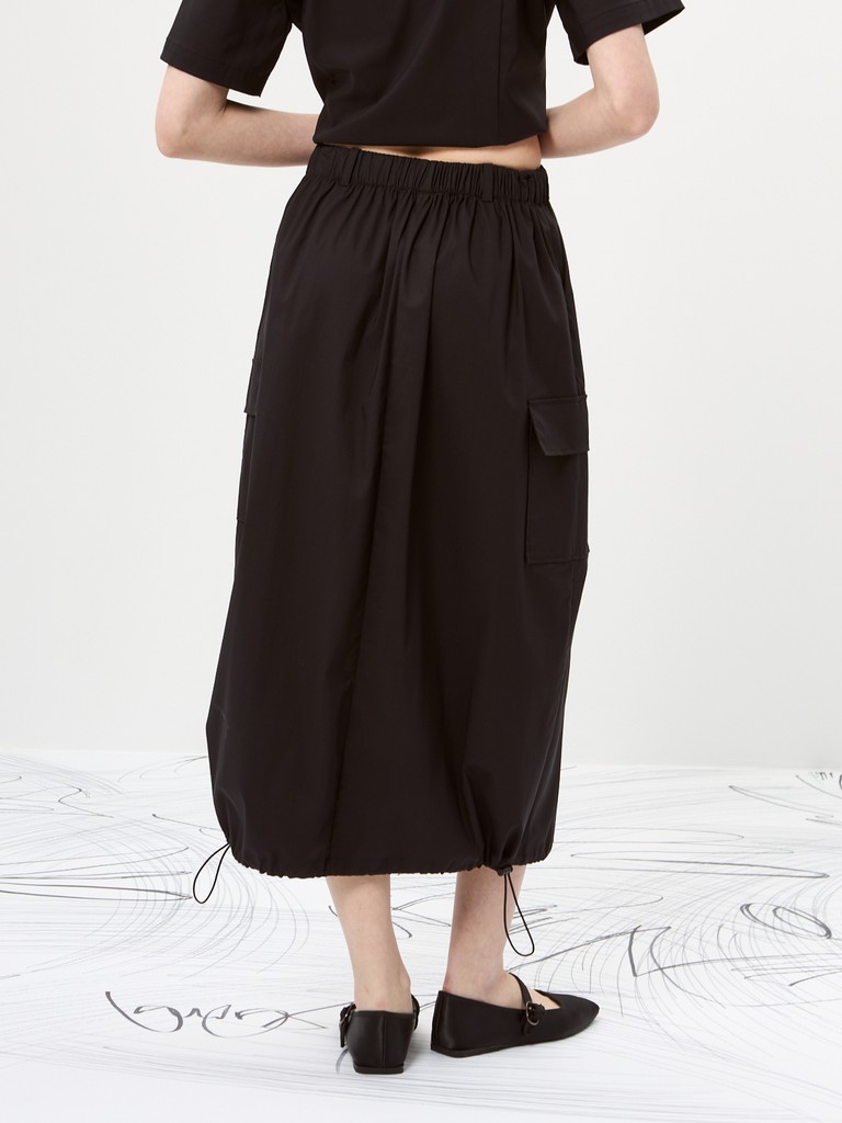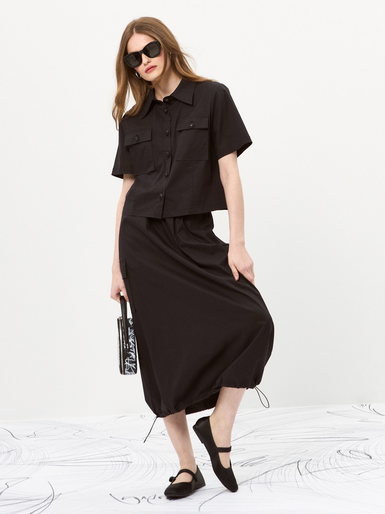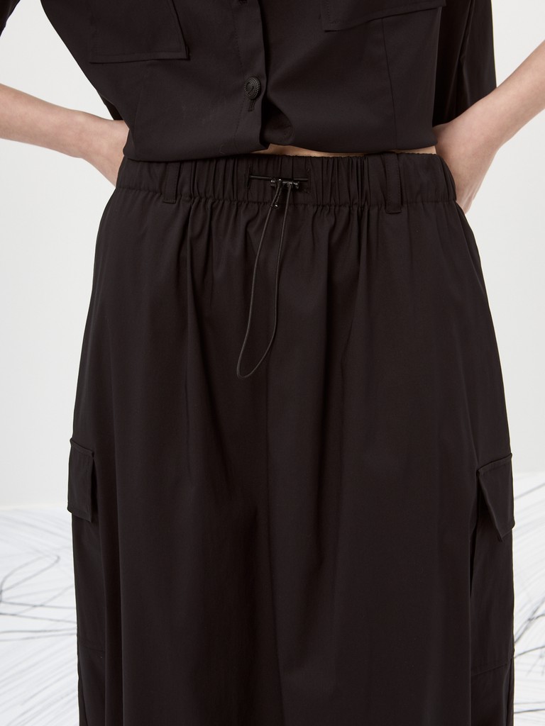 Прямая юбка – основа стильного и удобного образа. Эластичный пояс со шнурком обеспечит идеальную посадку. Шлевки для ремня позволят создать акцент на талии. Накладные карманы с клапанами добавят практичности и стиля. Эластичный шнур по низу позволит регулировать ширину и создавать уникальный силуэт. Универсальный элемент гардероба для любой ситуации.