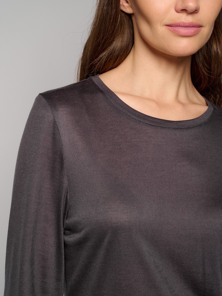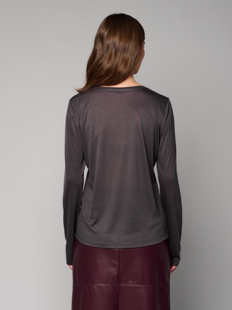 Базовый джемпер из тенсела – идеальное решение для тех, кто ценит комфорт и практичность. Тенсел – это дышащий и приятный на ощупь материал, который легко стирается и быстро сохнет. Полуприлегающий силуэт, круглый вырез и длинные рукава делают его подходящим для любого случая. Легко комбинируется с с джинсами, брюками или юбками, а также станет уютным элементом многослойного ансамбля. Отличный выбор для любого времени года.