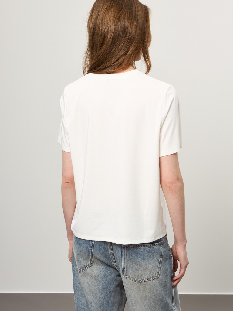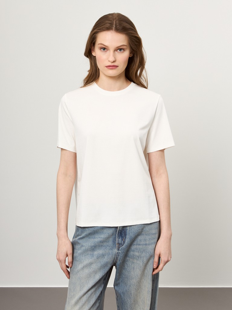 Эта базовая футболка – ваш идеальный спутник в жаркие дни. Мягкая, дышащая вискоза подарит приятные ощущения на коже, а добавление инновационного материала Sorona на основе кукурузных волокон обеспечит долговечность и устойчивость к износу. Универсальный дизайн, подходящий ко всему – от джинсов до юбок. Это изделие сочетает в себе безупречный стиль, премиальное качество и заботу об окружающей среде. Почувствуйте разницу с первого прикосновения!