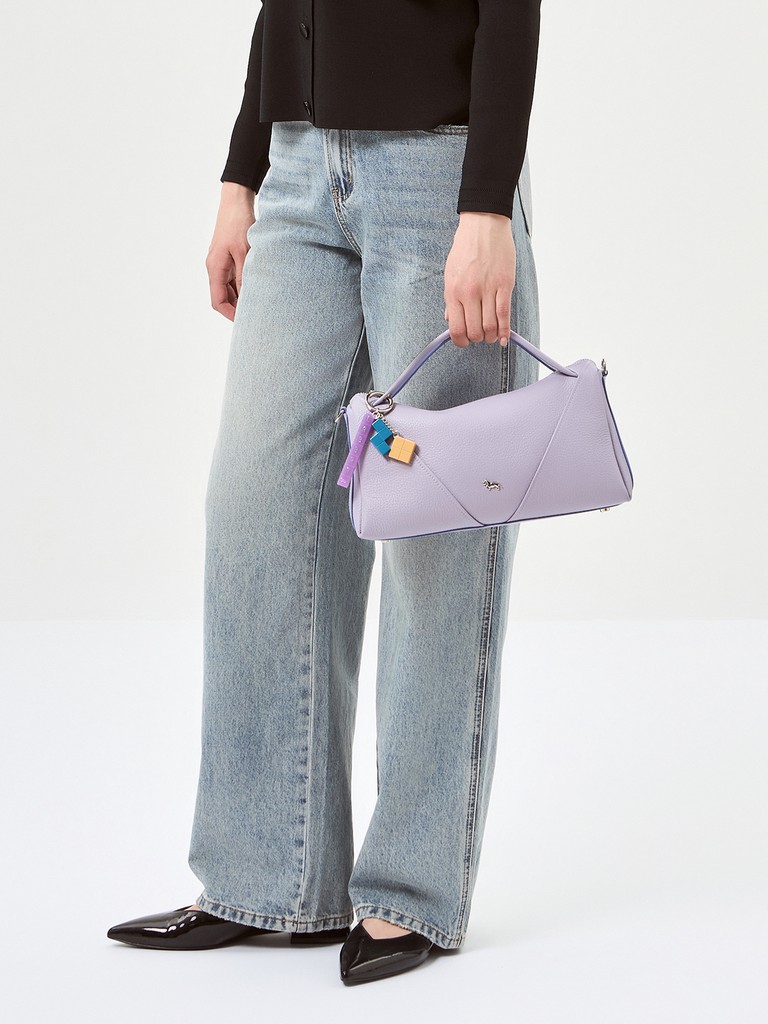 Женская сумка торговой марки Labbra из натуральной кожи. Изделие дополнено съемным брелоком-подвеской в стиле tetris из цветного пластика на фирменном кольце-карабине, который можно использовать как брелок для ключей. В комплекте также идет съемный текстильный ремень, выполненный в тех же цветах из трендовой палитры, что и брелок, создавая гармоничный акцент. Модель застегивается на молнию. Внутри одно отделение с карманом на молнии и открытым карманом. Высота ручек - 11 см. Длина регулируемого съемного плечевого ремня из текстиля - 105 см, ширина - 4 см. Модель имеет ножки на дне. Не вмещает формат А4.