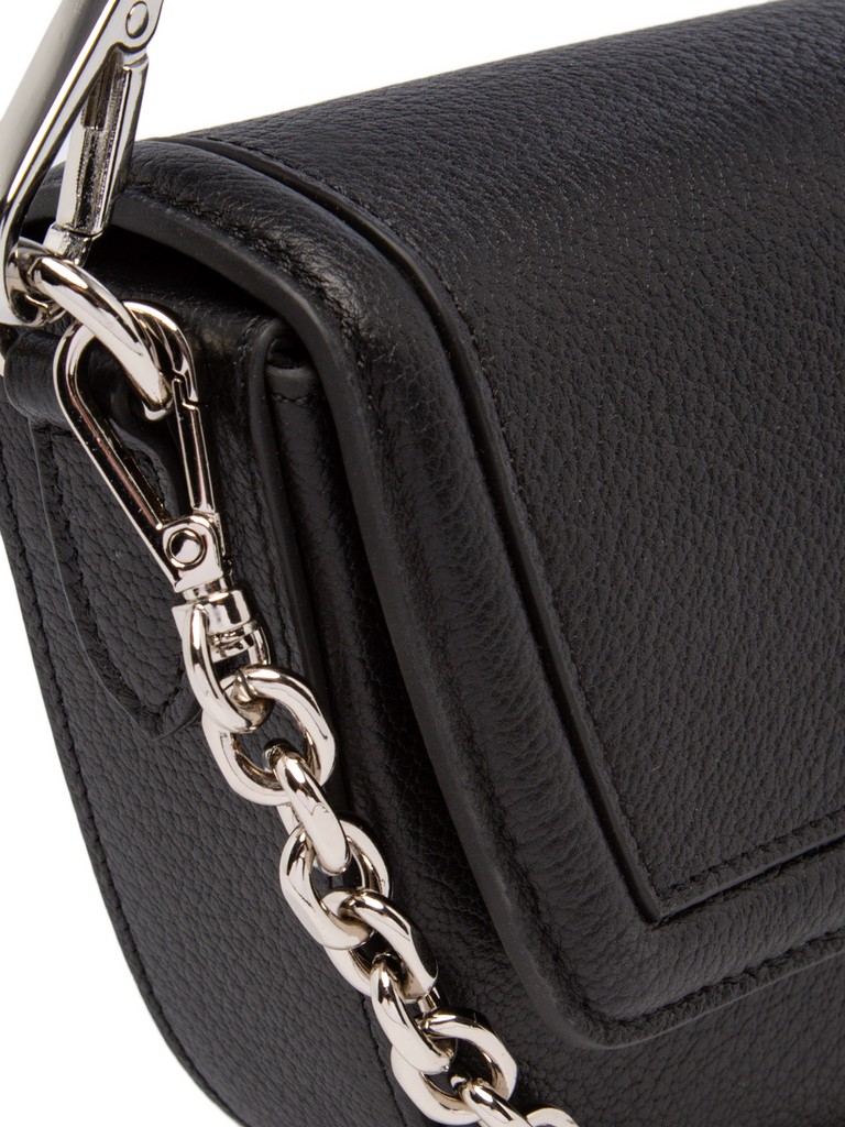 Женская сумка торговой марки Labbra из натуральной кожи. Модель закрывается клапаном на скрытые магниты. Содержит внутри один отдел, в котором имеются открытый карман и четыре кармашка для пластиковых карт. На задней стенке есть открытый карман. Высота съемной ручки - 12 см. Максимальная длина съемного плечевого ремня-цепочки - 105 см, ширина - 1,5 см. Модель не имеет ножки на дне. Не вмещает формат А4.