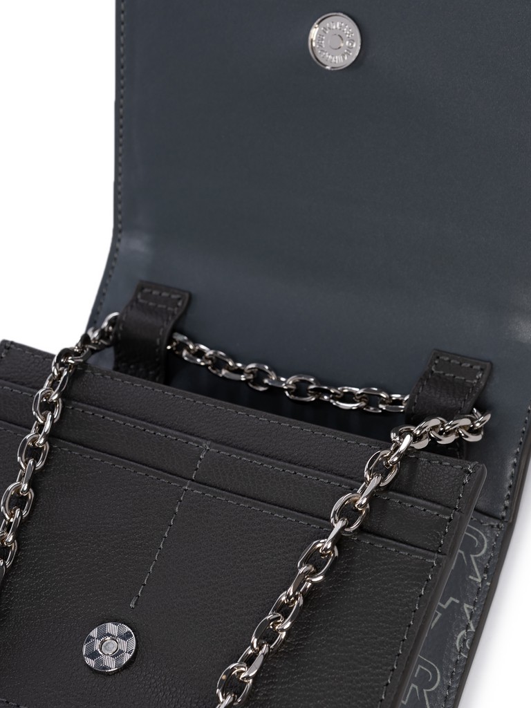 Женский органайзер торговой марки Labbra из натуральной кожи. Модель закрывается клапаном на магнитную кнопку. Содержит внутри один отдел, под клапаном имеются четыре кармашка для пластиковых карт. Длина металлического наплечного ремня-цепочки - 103 см., ширина - 1 см. Модель не имеет ножки на дне. Не вмещает формат А4.