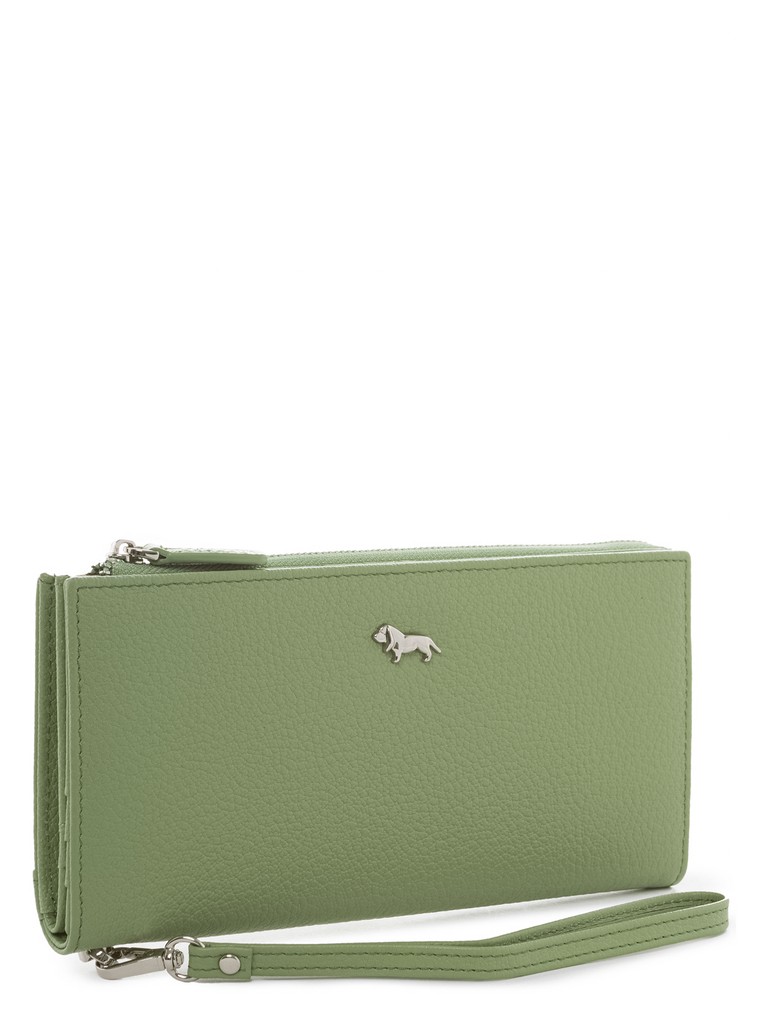 Женский кошелек торговой марки LABBRA из натуральной кожи. В кошельке два основных отделения, Одно отделение закрывается на металлическую молнию и внутри имеет 2 отделения и 2 дополнительных плоских кармана для купюр и одно отделение для мелочи, которое закрывается на дополнительную пластиковую молнию. Второе основное отделение закрывается на два скрытых магнита и внутри имеет 4 плоских кармана для купюр и 13 карманов для кредитных карт. Кошелёк имеет съёмную ручку-петлю на карабине высотой 15см.