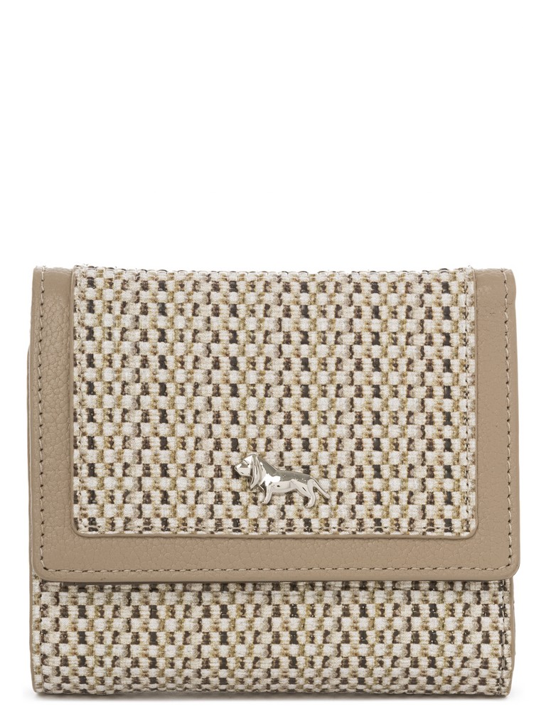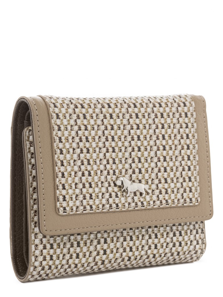 Женский кошелёк торговой марки LABBRA из натуральной кожи. Принт изделия отражает мировой тренд на натуральность и природные мотивы. Он нанесен на лицевую сторону натуральной кожи с использованием сеточной технологии, создавая эффект ткани из натурального льна. Тиснение подчеркивает текстуру, усиливая реалистичность рисунка. Модель закрывается на клапан с кнопкой. В кошельке есть 3 складывающихся отделения для купюр одно из которых закрывается на пластиковую молнию. 9 отделений для кредитных и дисконтных карт. Отделение для мелочи находится внутри и закрывается на дополнительный клапан с кнопкой.