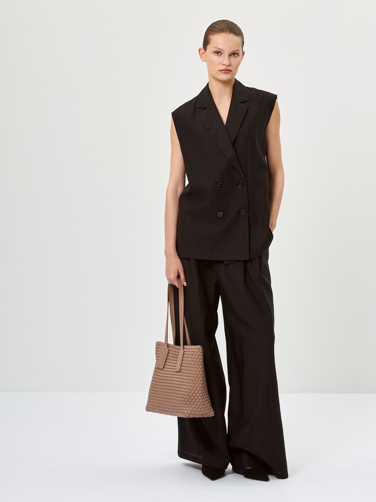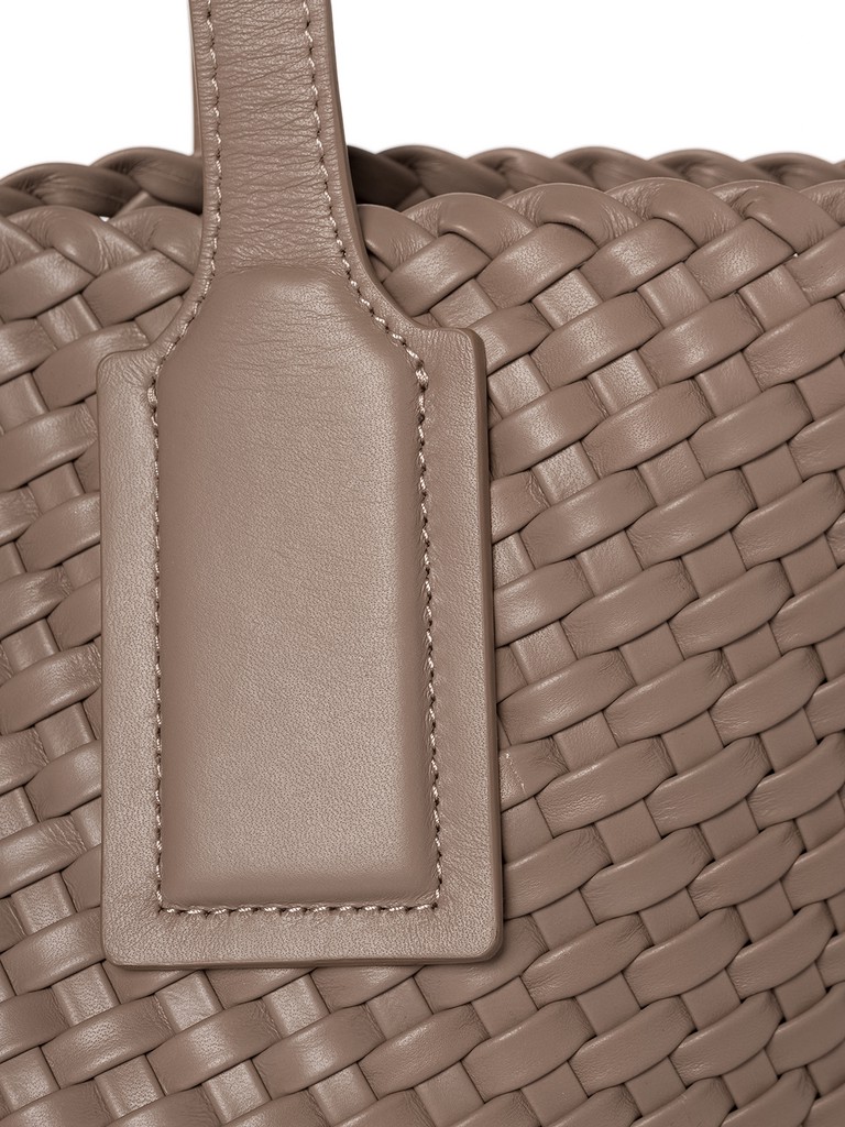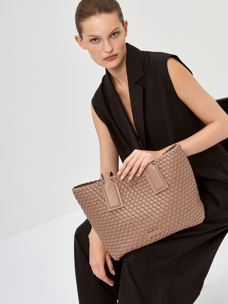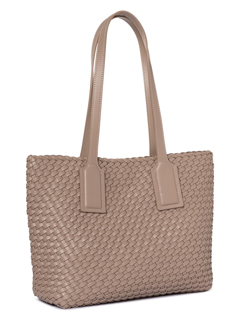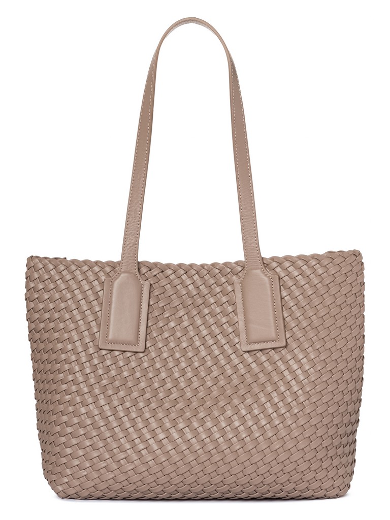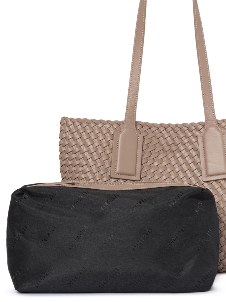 Женская сумка торговой марки Eleganzza выполнена из высококачественной телячьей кожи. Корпус сумки изготовлен с использованием техники ручного плетения, что придает изделию особую прочность. Модель застегивается на скрытый магнит. Содержит внутри одно отделение с вкладной косметичкой. Косметичка застегивается на молнию и имеет внутри карман на молнии. На задней стенке косметички есть открытый карман. Высота ручек - 26 см. Модель не имеет ножки на дне. Вмещает формат А4.