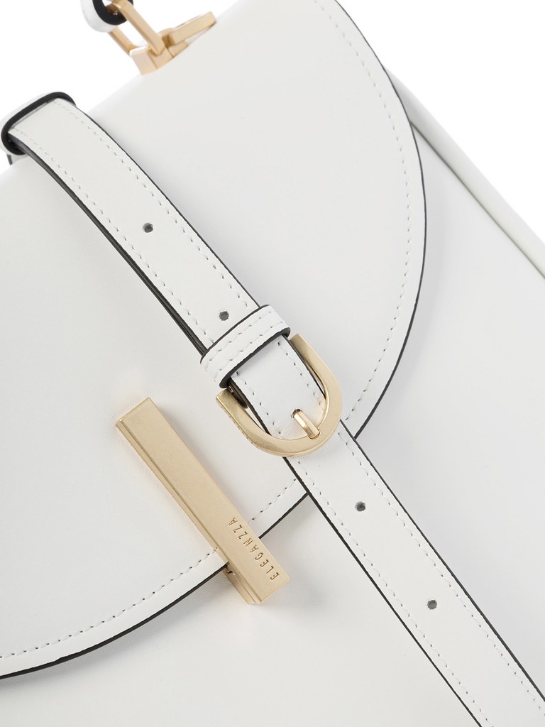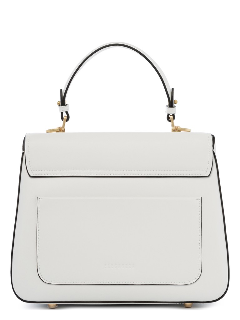 Женская сумка торговой марки Eleganzza из натуральной кожи. Модель закрывается клапаном на замок. Содержит внутри один отдел, в котором имеются карман на молнии и открытый карман. На задней стенке есть открытый карман. Высота ручки - 11 см. Максимальная длина регулируемого съемного плечевого ремня из натуральной кожи - 120 см, ширина - 1 см. Модель имеет ножки на дне. Не вмещает формат А4.