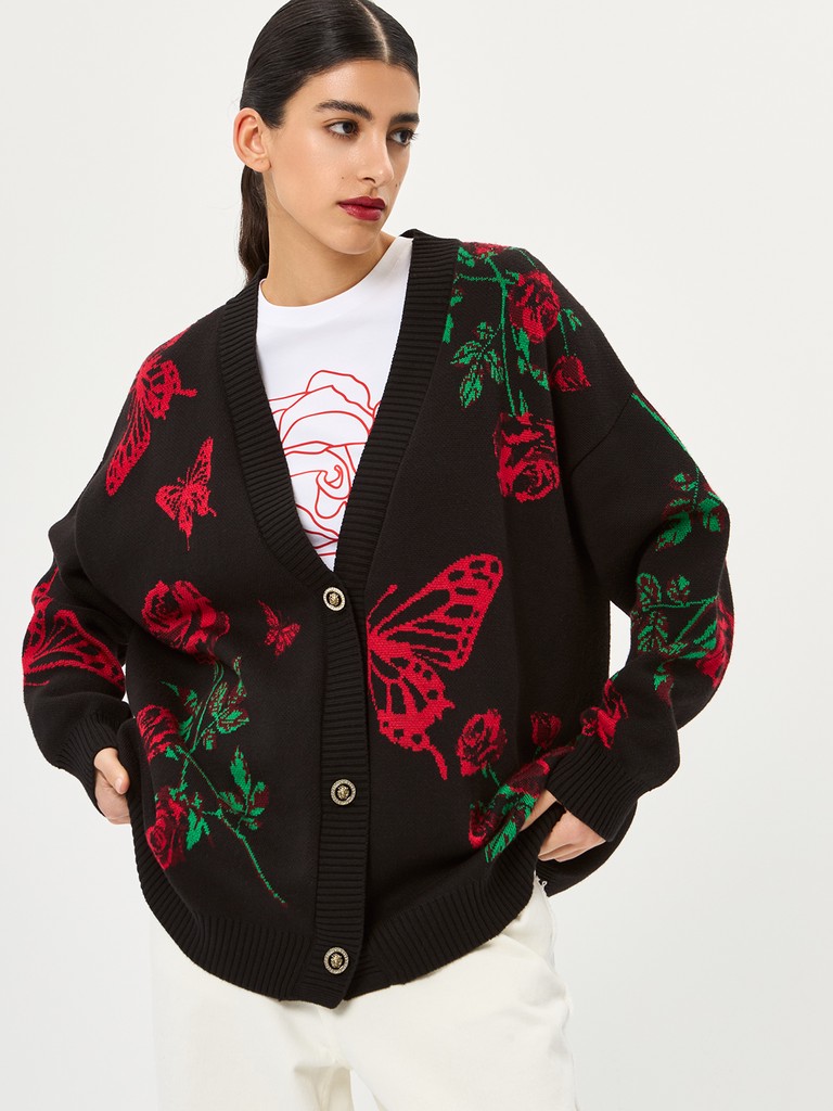 Вязаный кардиган с ярким принтом из коллекции Renaissance Flowers – когда мода встречается с искусством! Удобный крой и оригинальный дизайн, вдохновленный духом Возрождения, делают его идеальным выбором для создания утонченных и стильных образов на любой случай. Ощутите легкость силуэтов и элегантность деталей, в которых живет само искусство!