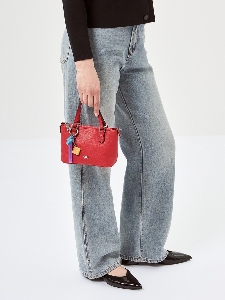 Женская сумка торговой марки Labbra из натуральной кожи. Изделие дополнено съемным брелоком-подвеской в стиле tetris из цветного пластика на фирменном кольце-карабине, который можно использовать как брелок для ключей или стильный аксессуар. Модель застегивается на молнию. Внутри одно отделение с карманом на молнии и открытым карманом. Высота ручек - 8 см. Максимальная длина регулируемого съемного плечевого ремня из натуральной кожи - 119 см, ширина - 1 см. Модель не имеет ножки на дне. Не вмещает формат А4.