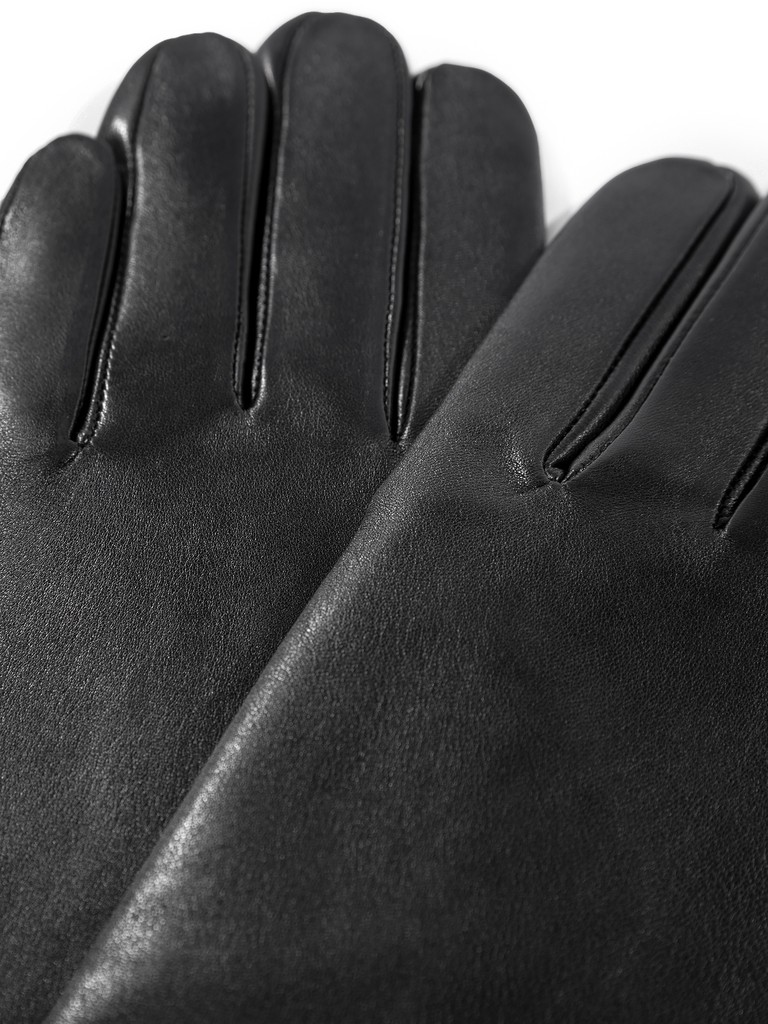 Перчатки торговой марки ELEGANZZA производства Китай изготовлены из натуральной кожи чёрного цвета. Подкладка: 100% шерсть. Длина манжеты от нижней точки большого пальца до края перчаток составляет 6 см. Пальцы средние.