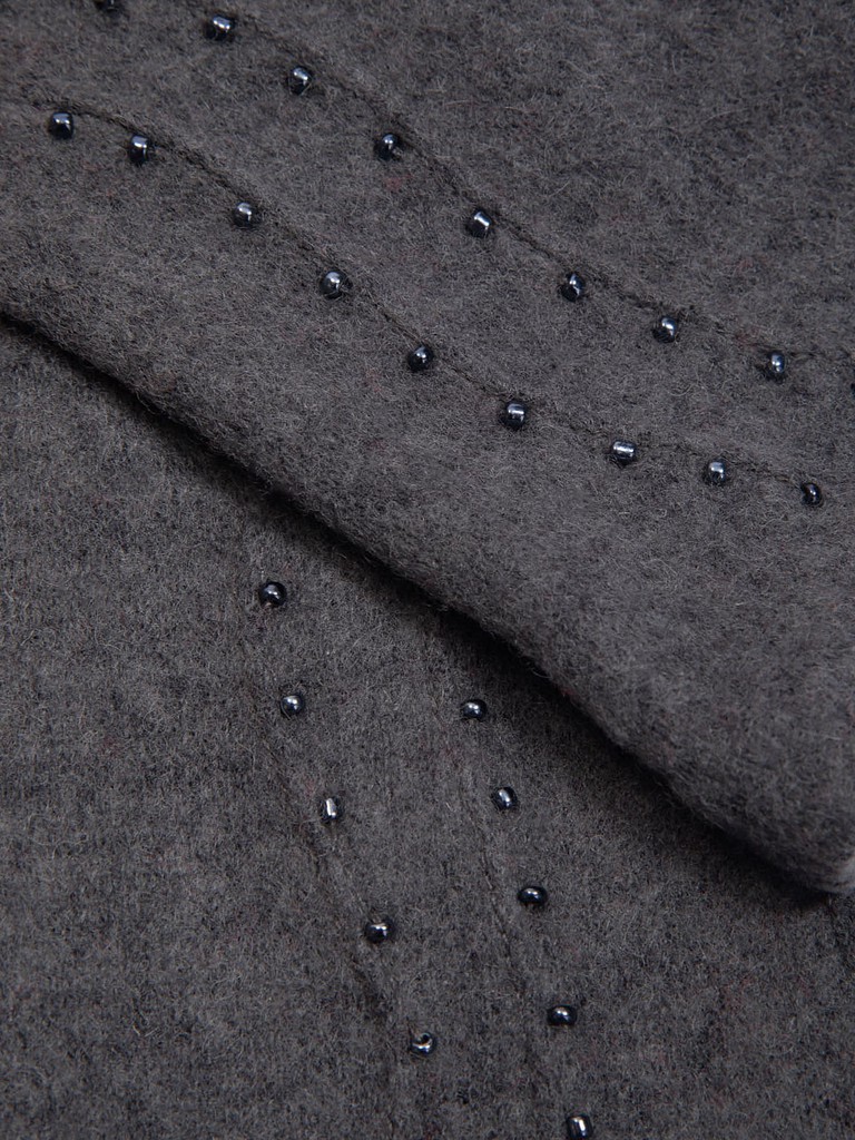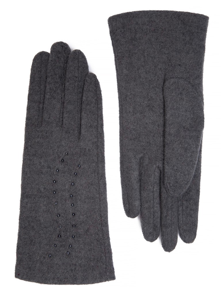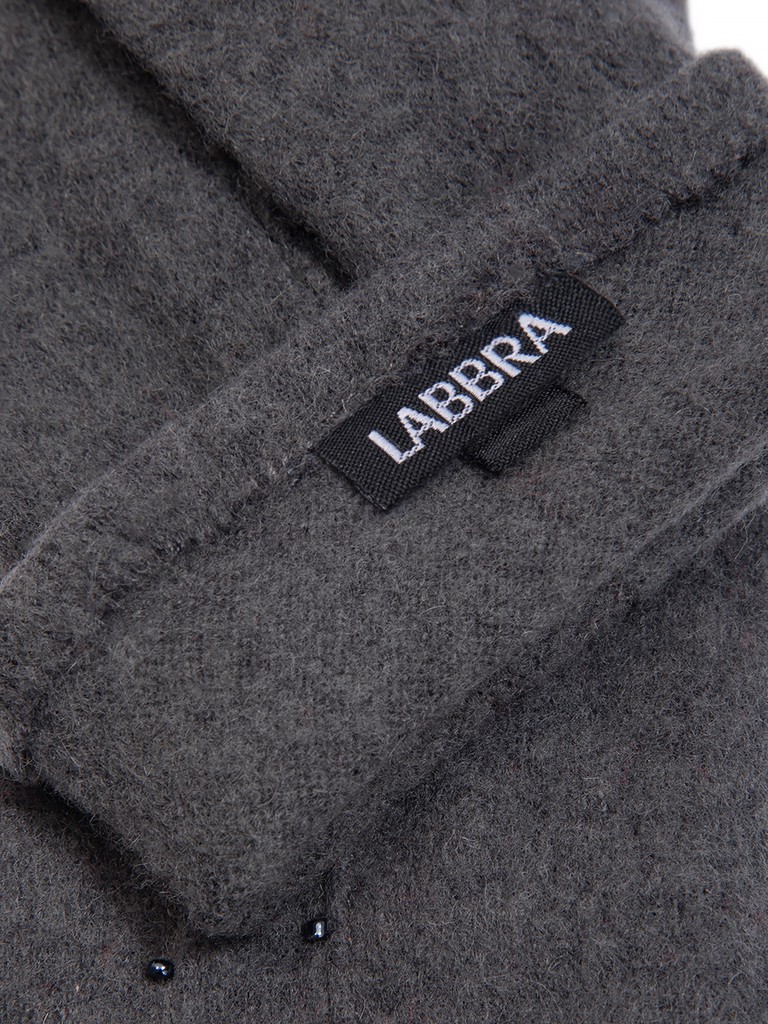 Перчатки торговой марки LABBRA производства Китай выполнены из трикотажной шерсти. Состав трикотажа: 80% шерсть, 20% нейлон. Без подкладки. На лицевой стороне перчатки декоративная отстрочка и бисер. Длина манжеты от нижней точки большого пальца до края перчатки - 5,5 см. Длина пальцев - средняя.