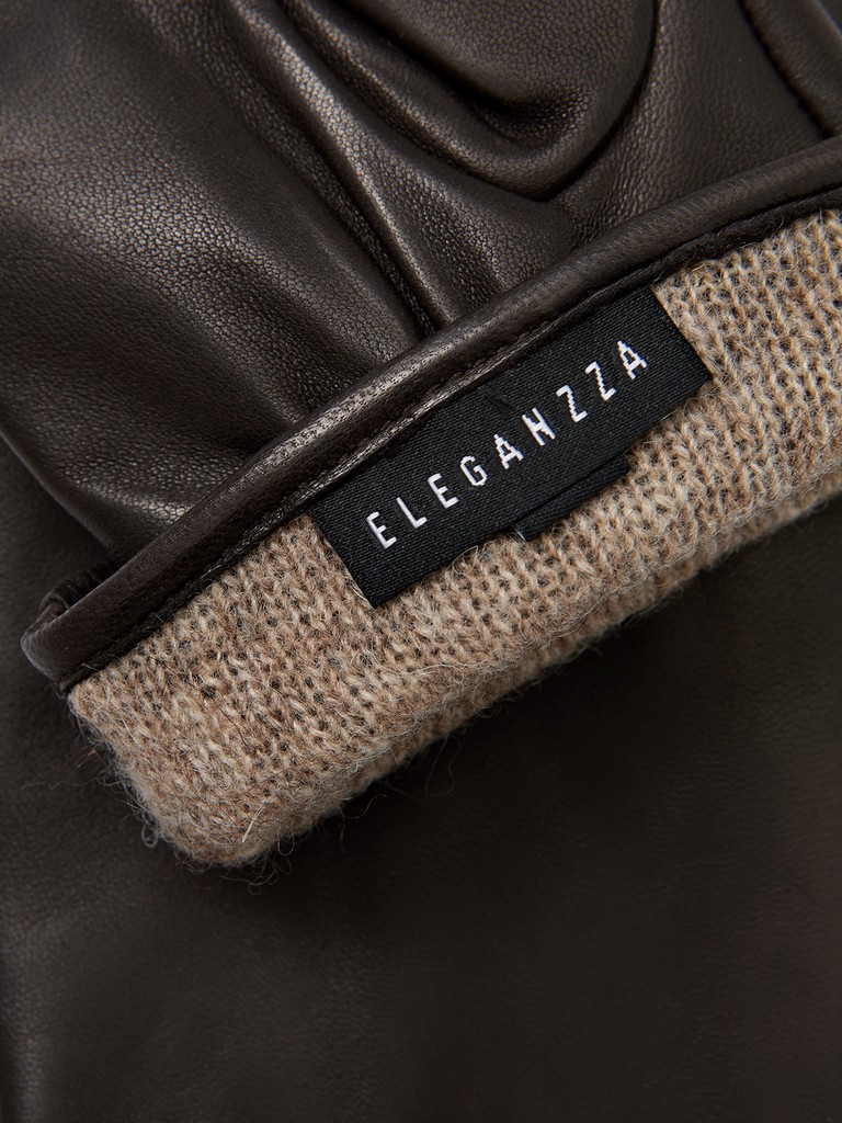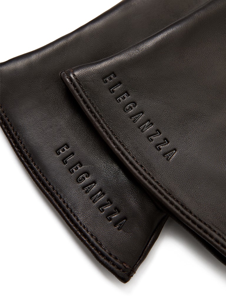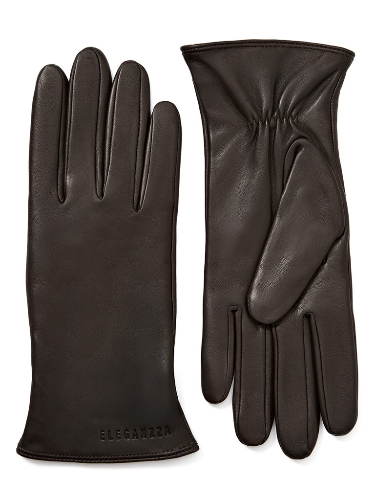 Перчатки женские торговой марки ELEGANZZA из натуральной кожи ягненка производства Италии. Подкладка: 100% шерсть. В углу перчатки со стороны мизинца фирменный "штамп" ELEGANZZA. Длина манжеты от нижней точки большого пальца до края перчаток составляет - 5,5 см. Длина пальцев - средняя.