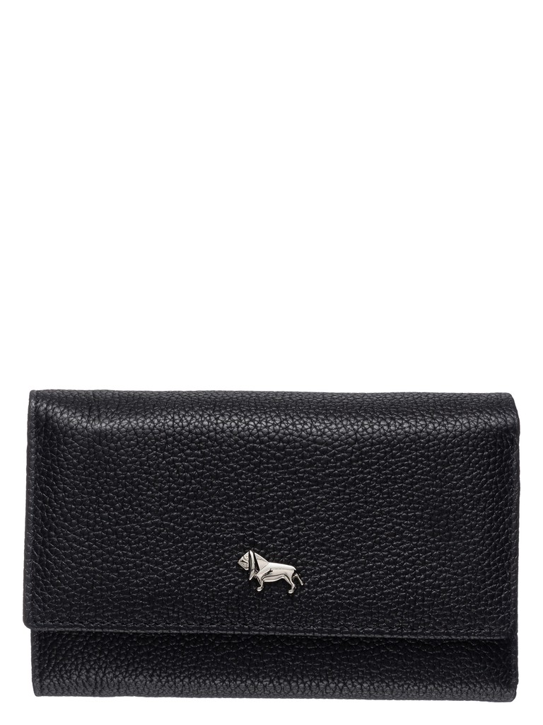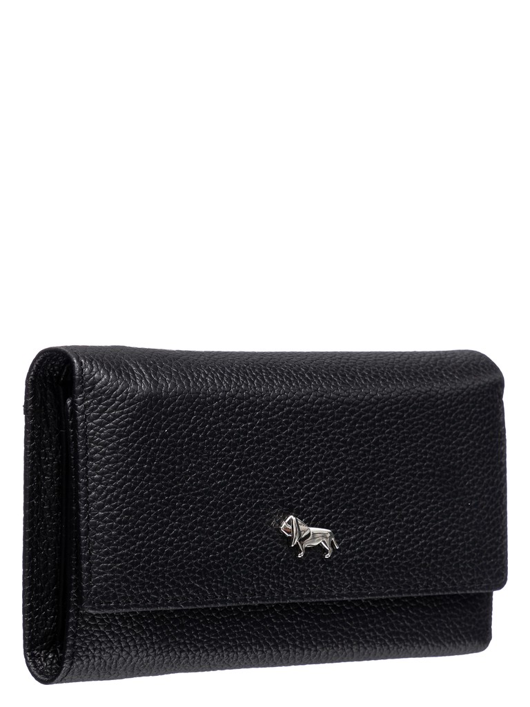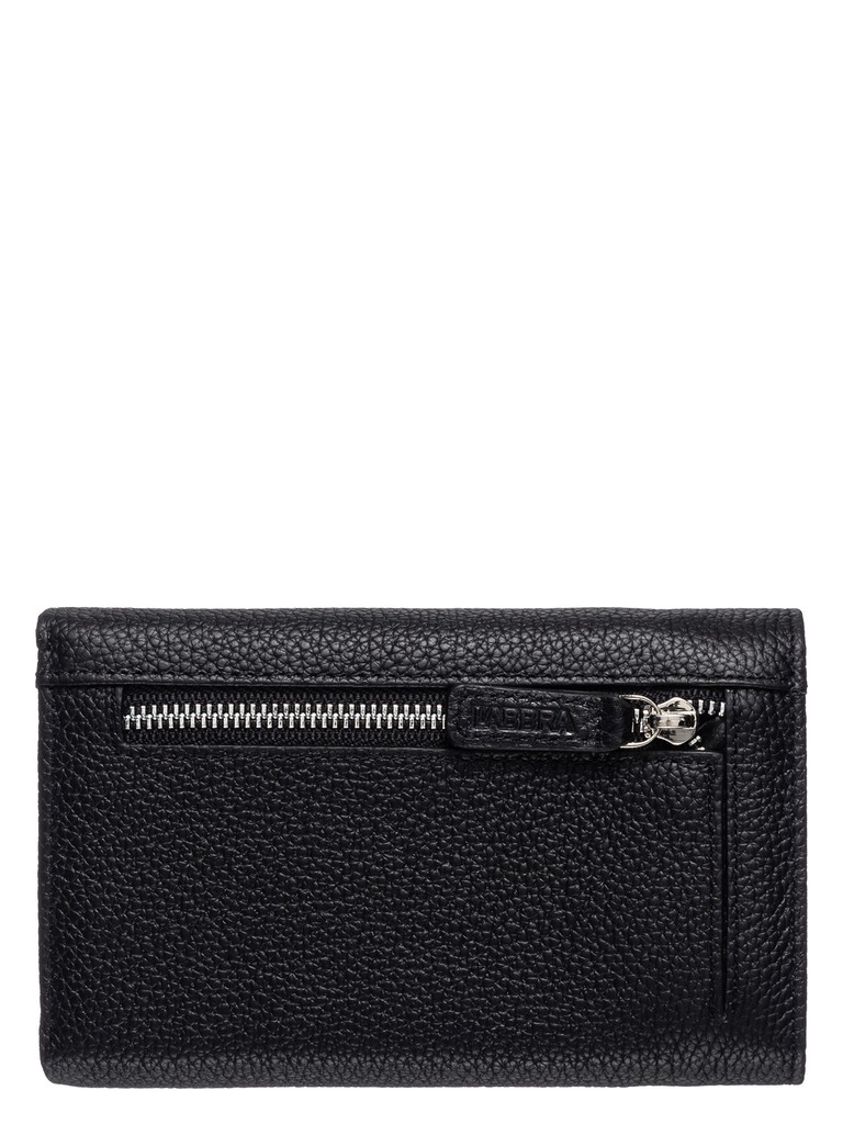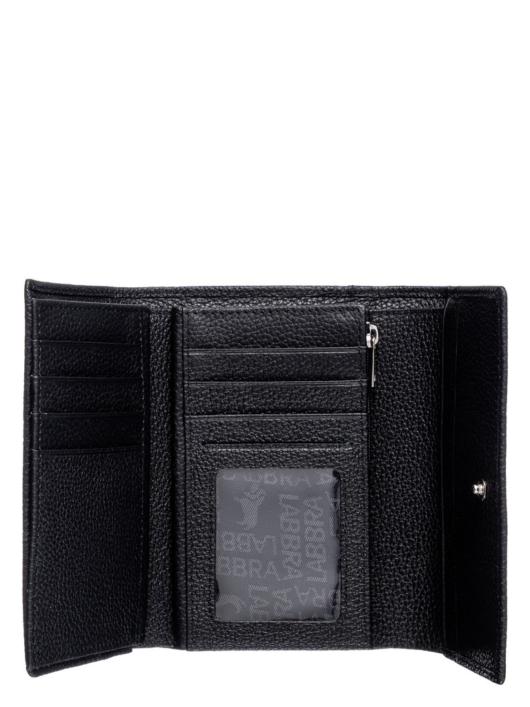 Женский кошелёк торговой марки LABBRA из натуральной кожи. Модель закрывается клапаном на кнопку. В кошельке есть 2 складывающееся отделения для купюр, одно из которых закрывается на пластиковую молнию, 17 карманов для кредитных и дисконтных карт, 6 дополнительных различных плоских открытых кармана, 2 кармана для мелочи - внутри и снаружи, оба закрываются на молнию и имеют по одному отделению.