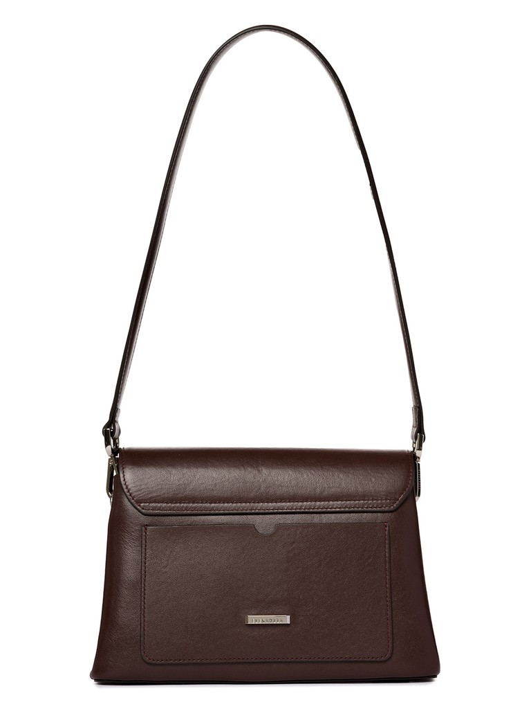 Женская сумка торговой марки Eleganzza из натуральной кожи. Модель закрывается клапаном и застегивается на поворотный замок. Внутри два отдела, в одном имеется карман на молнии, в другом - открытый карман. На задней стенке открытый карман. Высота ручек - 30 см. Длина регулируемого съемного плечевого ремня из натуральной кожи - 115 см., ширина - 1,8 см. Модель не имеет ножки на дне. Не вмещает формат А4.