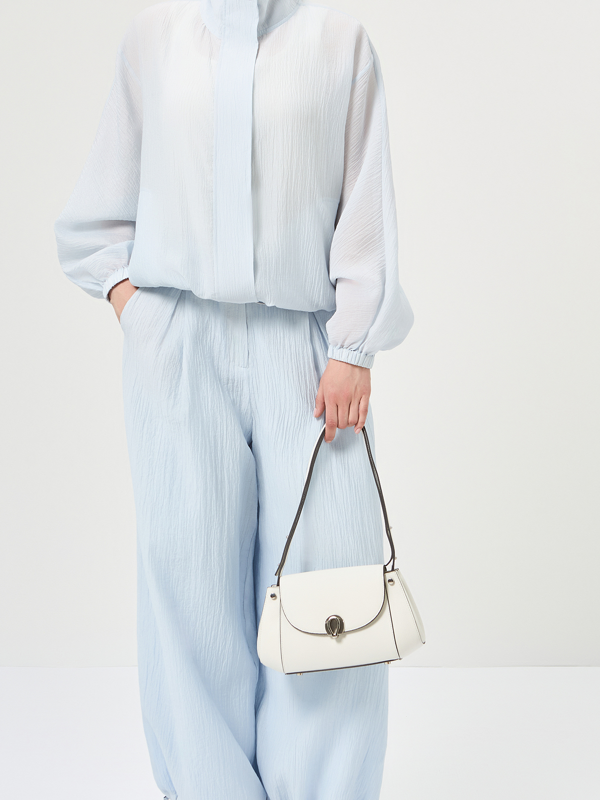 Женская сумка торговой марки Labbra из натуральной кожи. Модель закрывается клапаном на замок. Содержит внутри один отдел, в котором имеются карман на молнии и открытый карман. На задней стенке есть карман на молнии. Высота ручки - 25 см. Длина ручки, которая трансформируется в плечевой ремень - 111 см, ширина - 1,5 см. Модель имеет ножки на дне. Не вмещает формат А4.