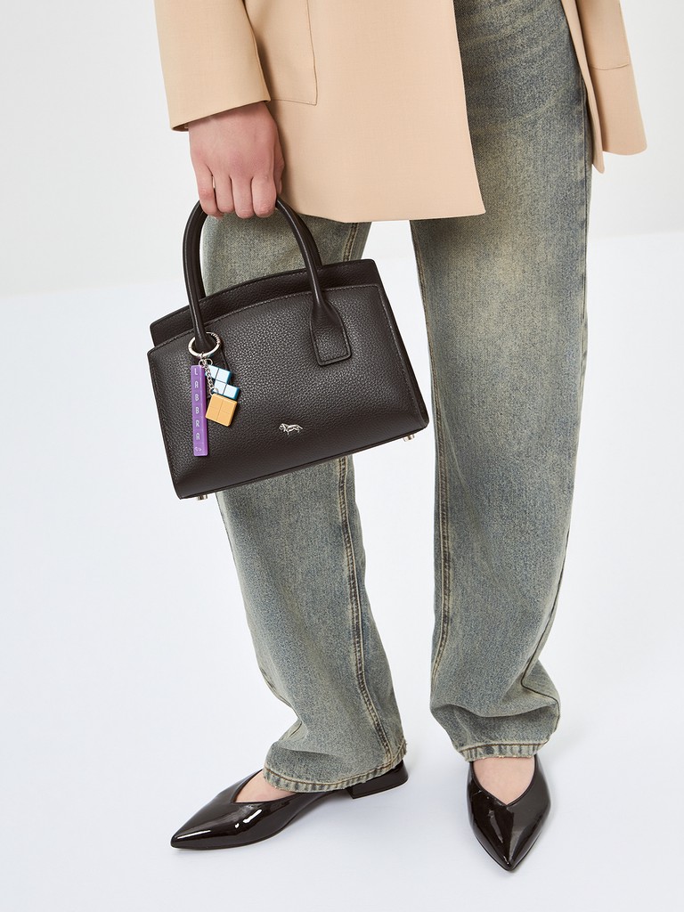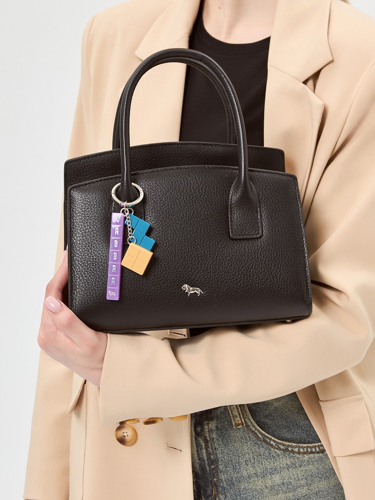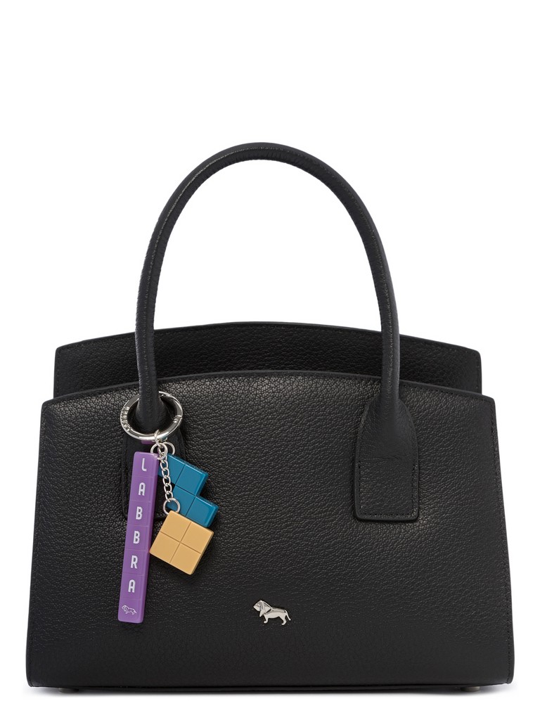 Женская сумка торговой марки Labbra из натуральной кожи. Изделие дополнено съемным брелоком-подвеской в стиле tetris из цветного пластика на фирменном кольце-карабине, который можно использовать как брелок для ключей или стильный аксессуар. Модель застегивается на молнию. Внутри одно отделение с карманом на молнии и открытым карманом. Высота ручек - 11 см. Длина регулируемого съемного плечевого ремня из натуральной кожи - 110 см, ширина - 1,5 см. Модель имеет ножки на дне. Не вмещает формат А4.