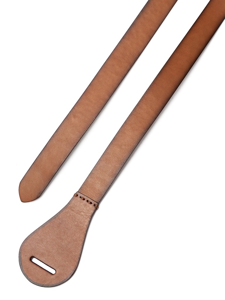Женский ремень торговой марки ELEGANZZA из натуральной гладкой кожи. Внутренняя сторона ремня выполнена из микрофибры (современный материал, обладающий пластическими свойствами кожи и повышенной износостойкостью). Ремень не имеет металлической пряжки. Для фиксации лента ремня протягивается через отверстие и завязывается узлом. Модель представлена в двух длинах - 150 см. и 165 см.
