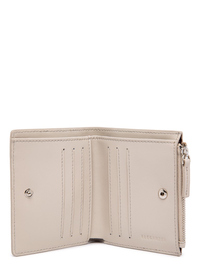 Женский кошелек торговой марки ELEGANZZA из натуральной кожи. Закрывается на кнопку. Внутри два отделения для крупных купюр. Отделение для мелочи находится снаружи и закрывается на металлическую молнию. Цвет фурнитуры никель.