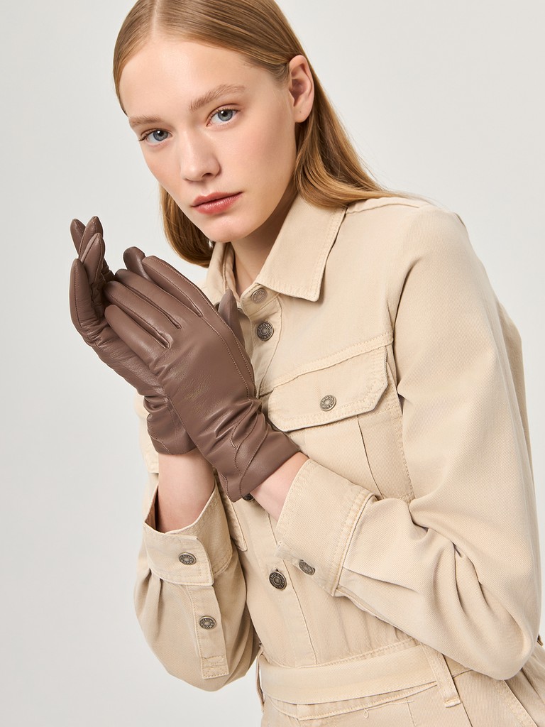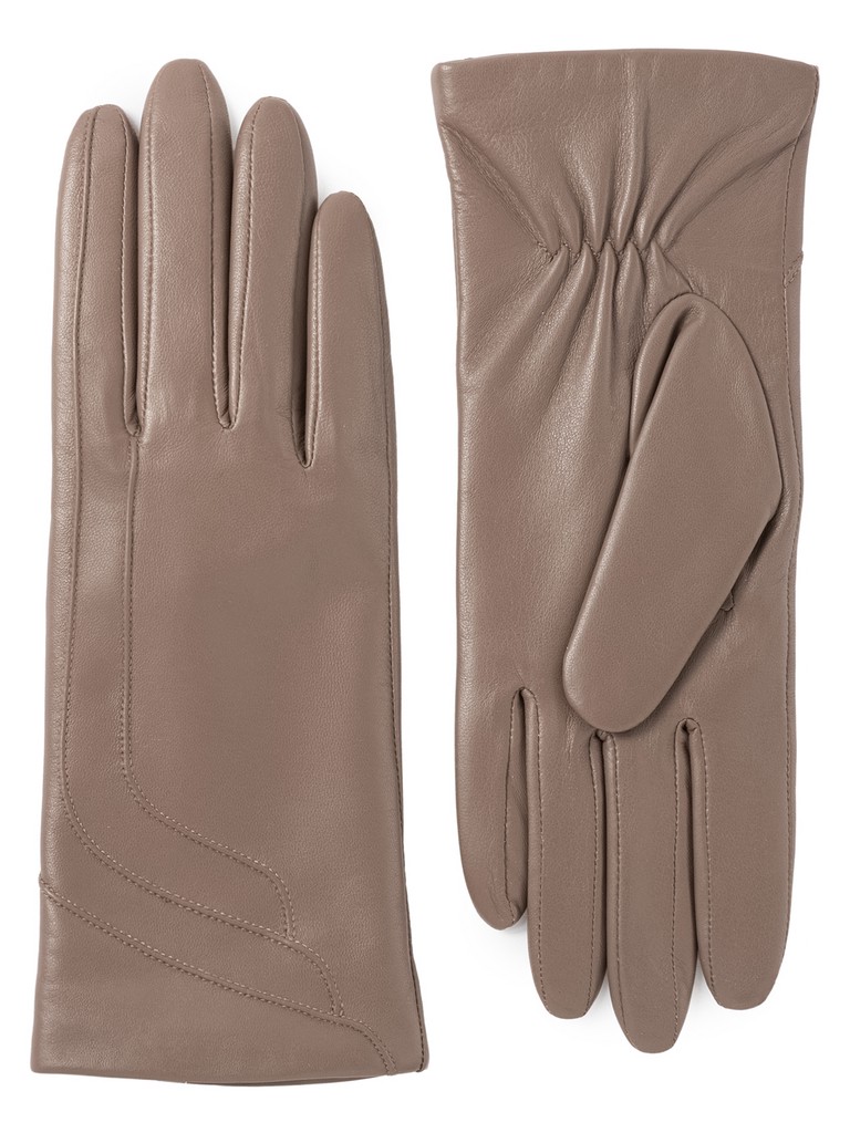 Перчатки женские торговой марки LABBRA. Выполнены из высококачественной натуральной кожи ягненка в трендовом цвете сезона. Дополнены смесовым шерстяным подкладом. Отделка - декоративная отстрочка на лицевой части манжета. Модель со средней длиной пальцев и длиной манжеты от нижней точки большого пальца до края перчаток - 6 см.
