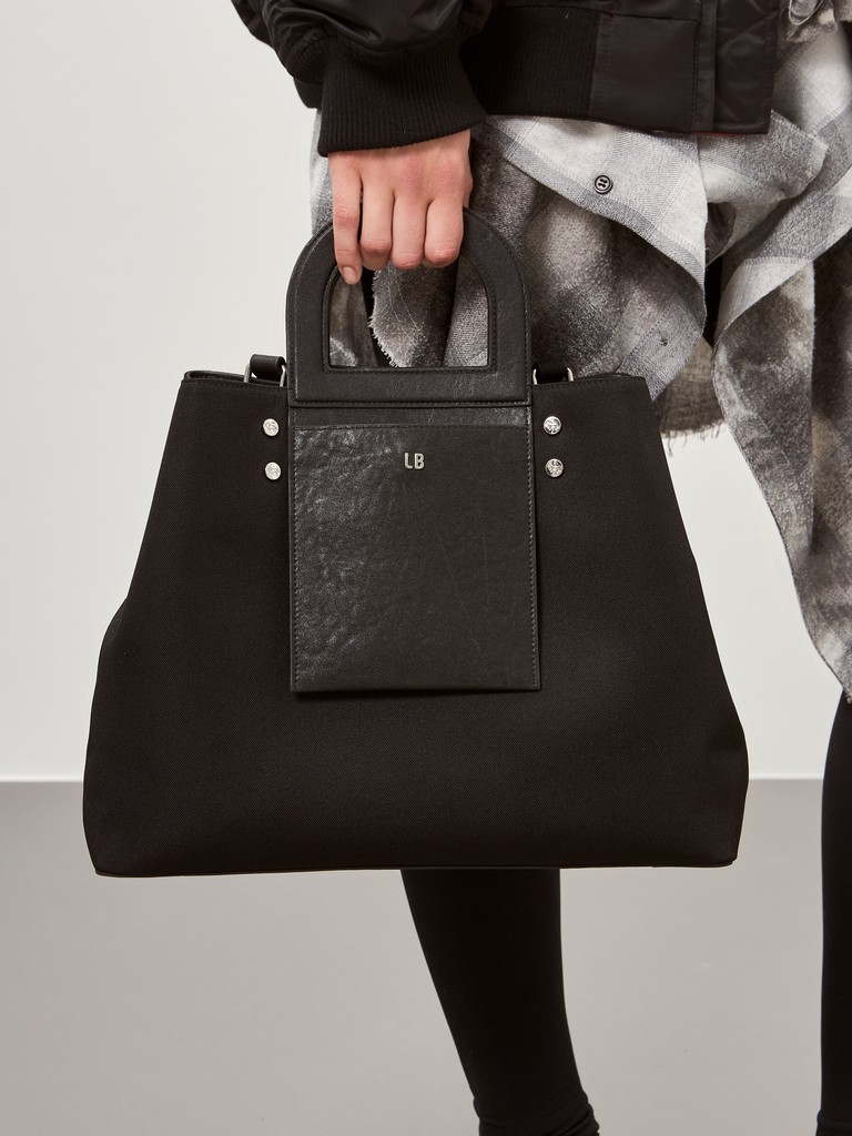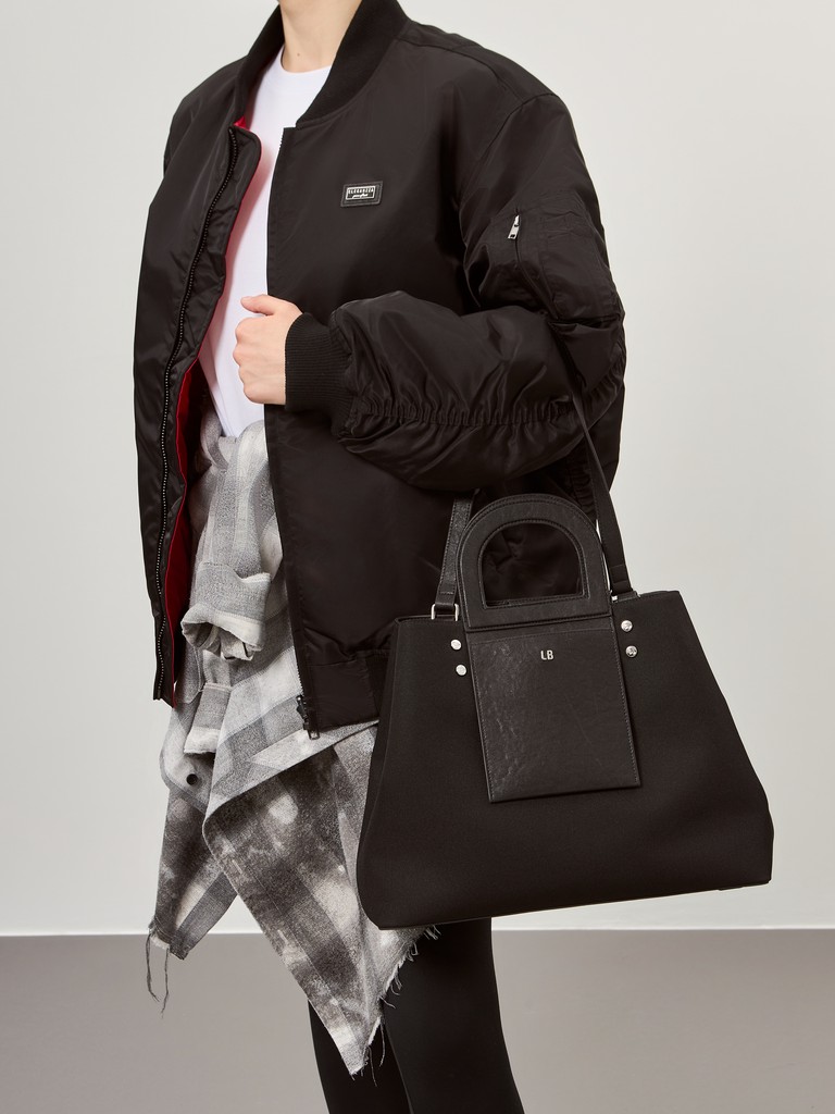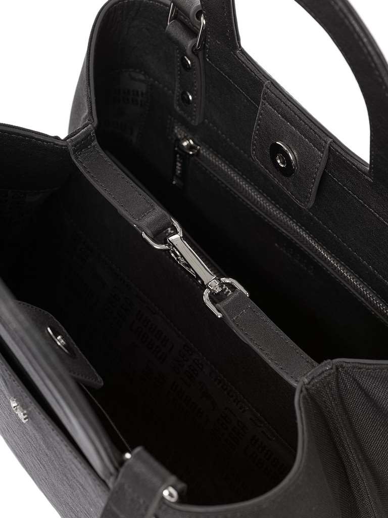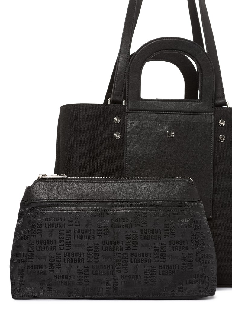 Женская сумка торговой марки Labbra из текстиля с отделкой из натуральной кожи. Модель закрывается на скрытый магнит. Внутри одно отделение с карманом на молнии, открытым карманом и вкладной косметичкой. Высота ручек – 7 см, максимальная высота ручек – 27 см. Модель не имеет ножки на дне. Вмещает формат А4.
