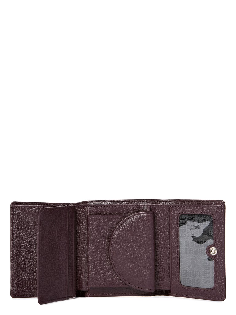 Женский кошелёк торговой марки LABBRA из натуральной кожи. Модель закрывается на клапан с кнопкой. В кошельке есть 3 складывающихся отделения для купюр одно из которых закрывается на пластиковую молнию. 9 отделений для кредитных и дисконтных карт. Отделение для мелочи находится внутри и закрывается на дополнительный клапан с кнопкой.