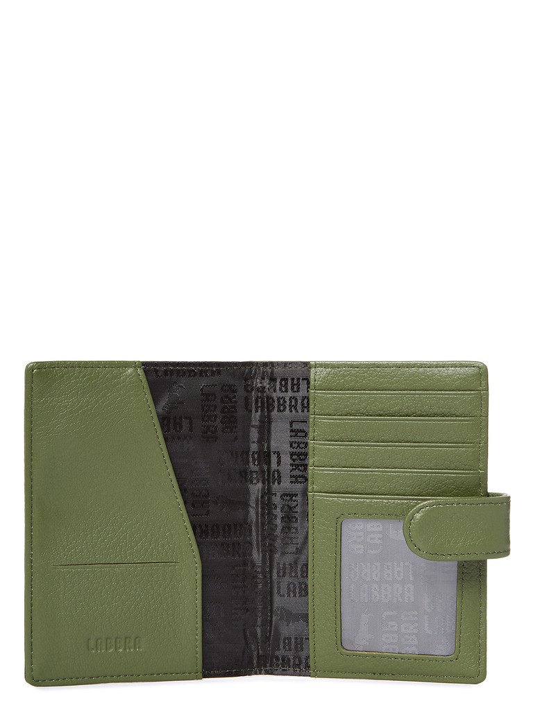 Женская обложка для паспорта марки LABBRA из натуральной кожи. Закрывается на регулируемый по объему заполнения цупфер с кнопкой. Внутри имеются шесть карманов для карточек.