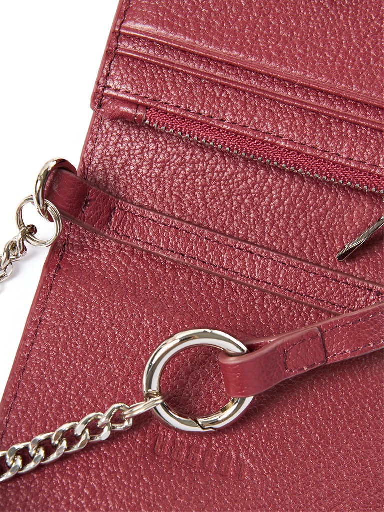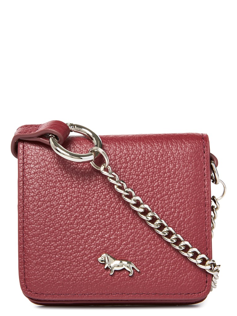 Женская карточница торговой марки LABBRA из натуральной кожи. Модель закрывается клапаном на магнитную кнопку. Содержит внутри один отдел, в котором есть три кармашка для банковских карт и отделение на молнии. На передней стенке имеются два кармашка для банковских карт, на задней - открытый карман. Длина наплечного ремня - 95 см., ширина - 0,5 см.