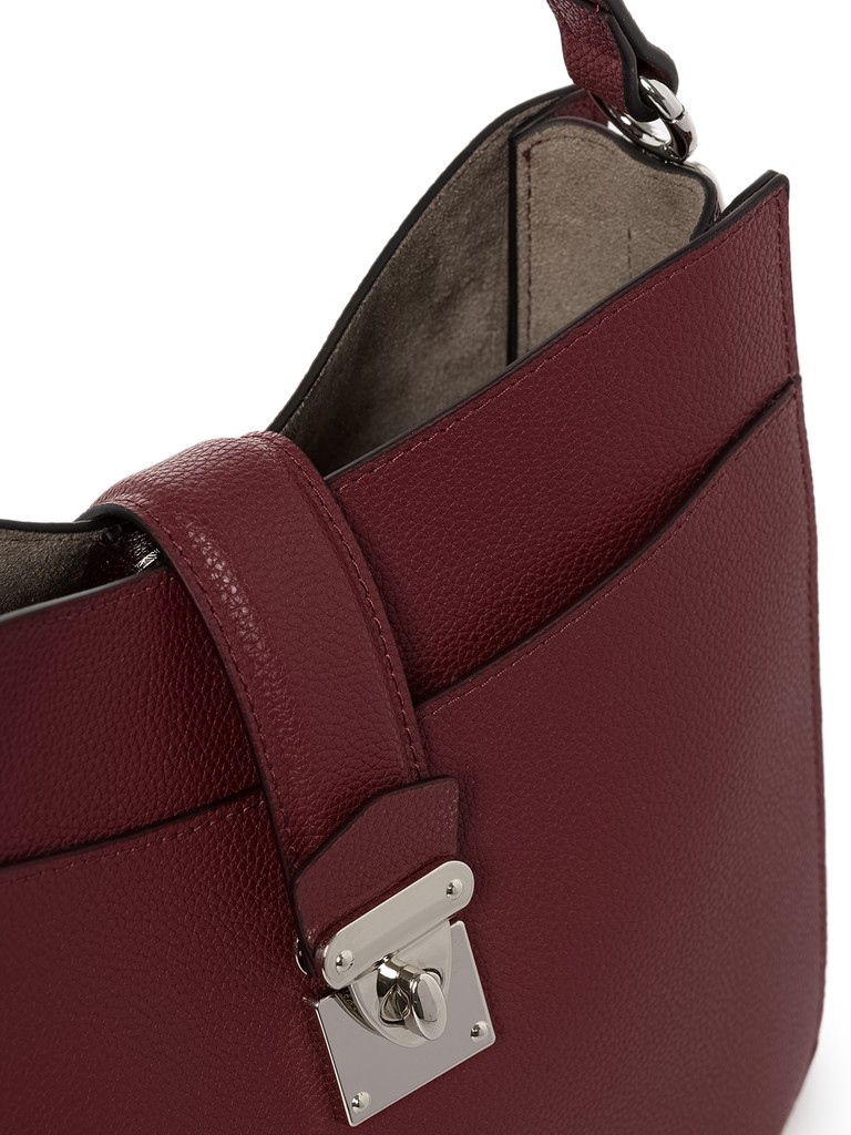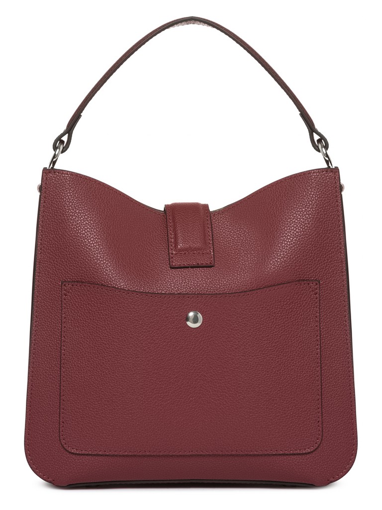 Женская сумка торговой марки Labbra из натуральной кожи. Модель застегивается хлястиком на замок. Содержит внутри одно отделение, в котором имеются карман на молнии, открытый карман и четыре кармашка для пластиковых карт. На передней и задней стенке есть карманы на магнитных кнопках. Высота ручки - 13 см. Длина регулируемого съемного плечевого ремня из натуральной кожи - 114 см, ширина - 1,5 см. Модель имеет ножки на дне. Не вмещает формат А4.