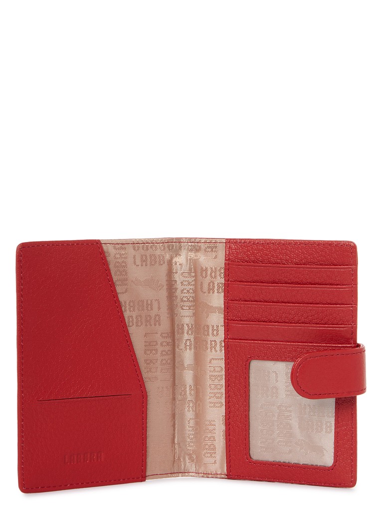 Женская обложка для паспорта марки LABBRA из натуральной кожи. Закрывается на регулируемый по объему заполнения цупфер с кнопкой. Внутри имеются шесть карманов для карточек.
